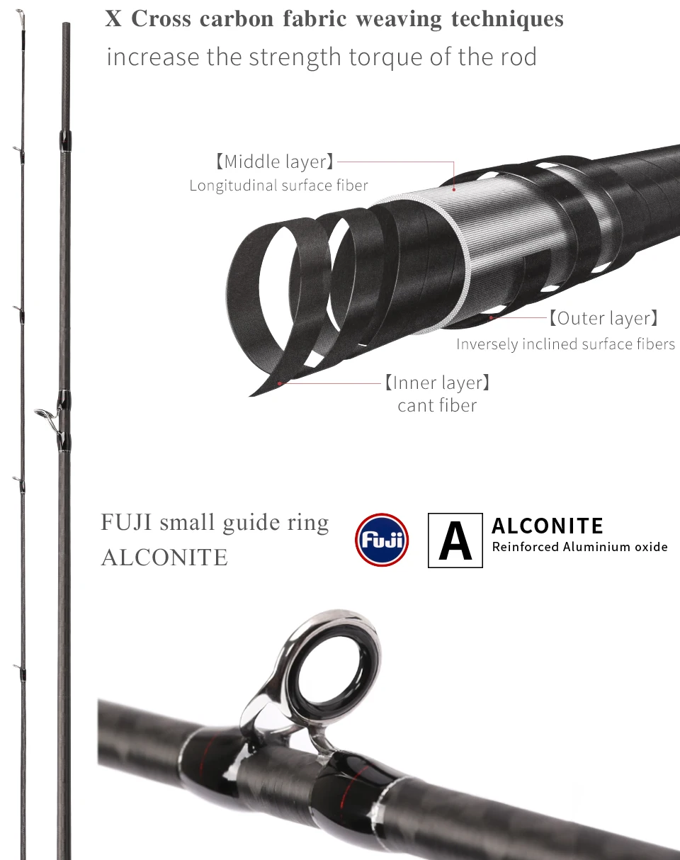 2.This fishing rod is made of carbon fiber, strong and durable.