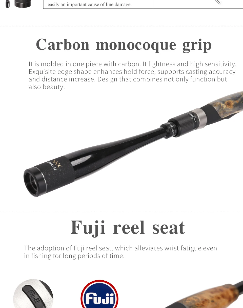 4. FUJI reel seat,let you have comfortable handfeeling while increasing the accuracy and stability of casting.