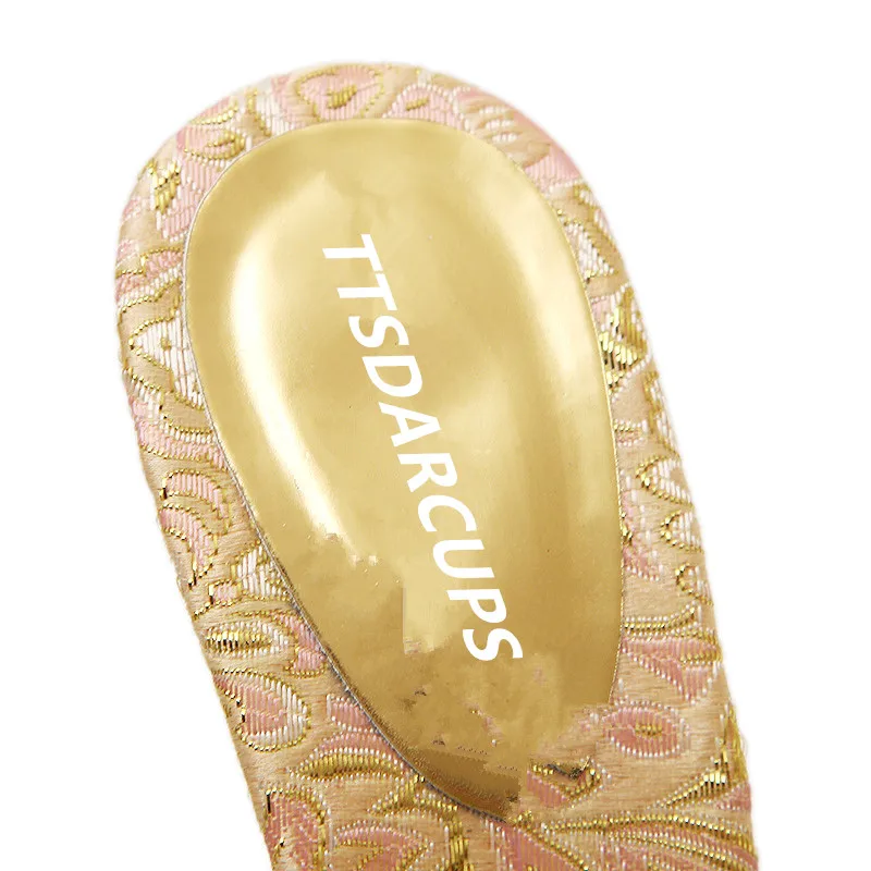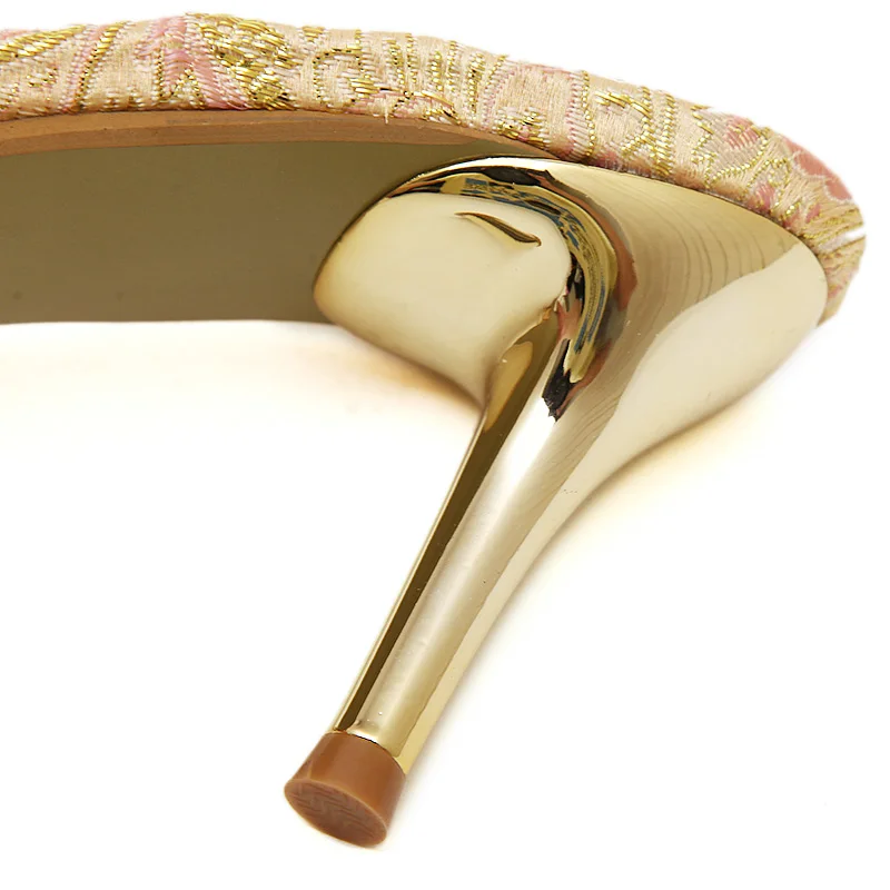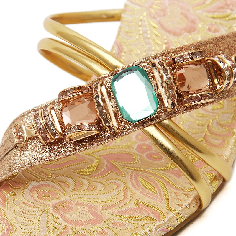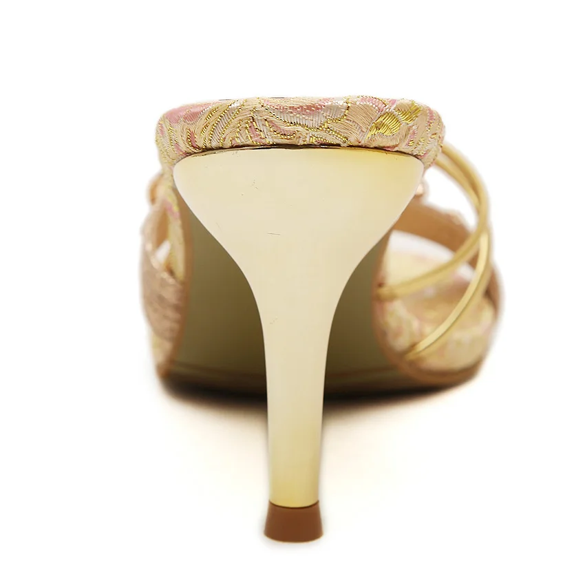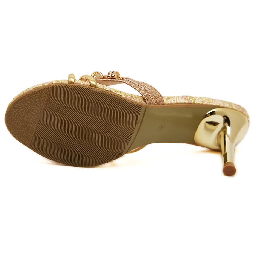 TTSDARCUPS High heel cool slippers Fine heel sandals Metal decoration of water drill Sexy night shop pump Rome women’s shoes