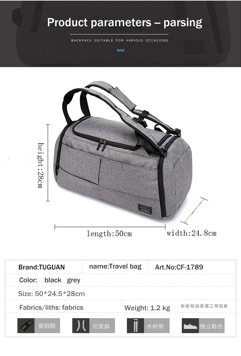 TUGUAN New Travel Bag Large Capacity Men Hand Luggage Travel Duffle Bags oxford fabric Weekend Bags Backpack Travel Bags