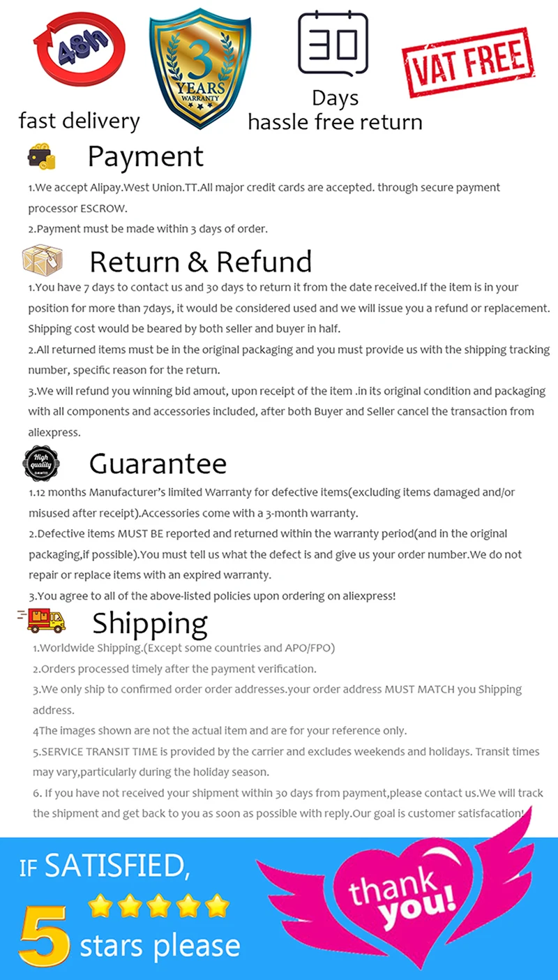 • If you did not receive the product within the guaranteed time( 45 days not including 2-5 day processing) you can request a refund or a reshipment.