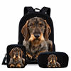Twoheartsgirl 3PCS Girls School Backpack Set Cute Dachshund Dog Print Bagpack for Kids Preppy Primary Children Bookbags Mochila