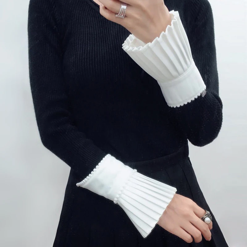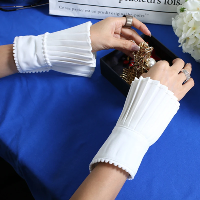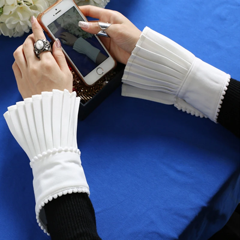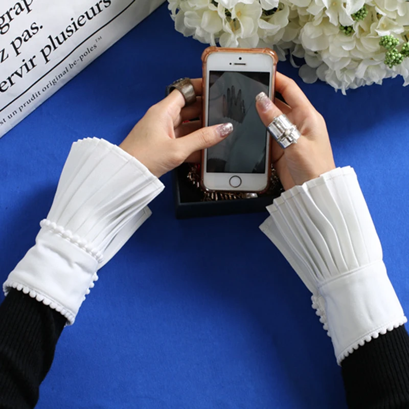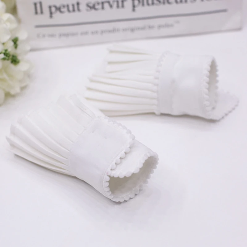 TWOTWINSTYLE Beading Cuff For Women Ruffles Pleated White Hidden Breasted Cuffs Spring Female Vintage Fashion