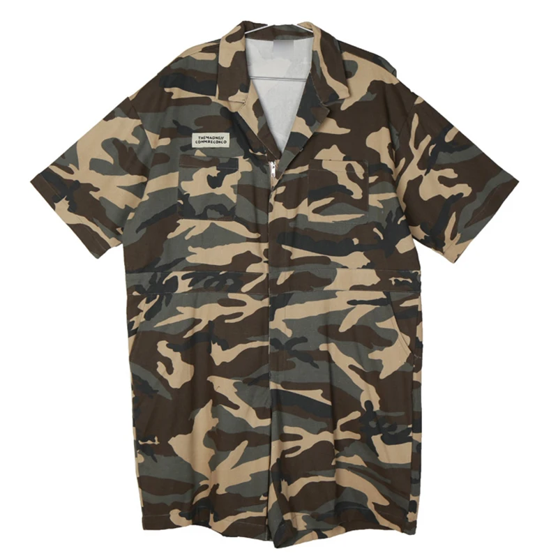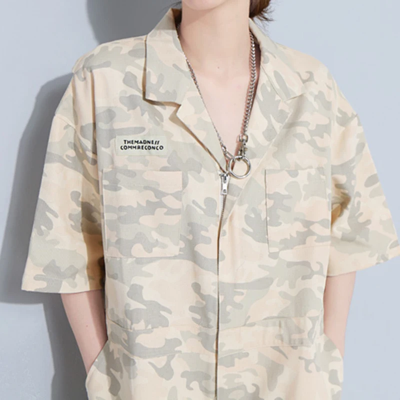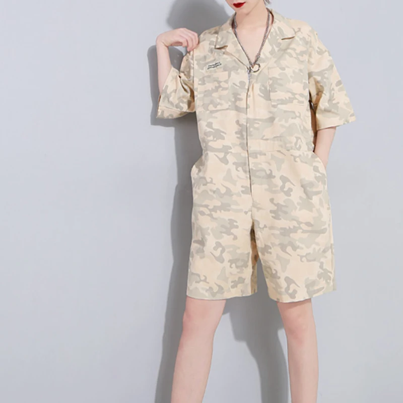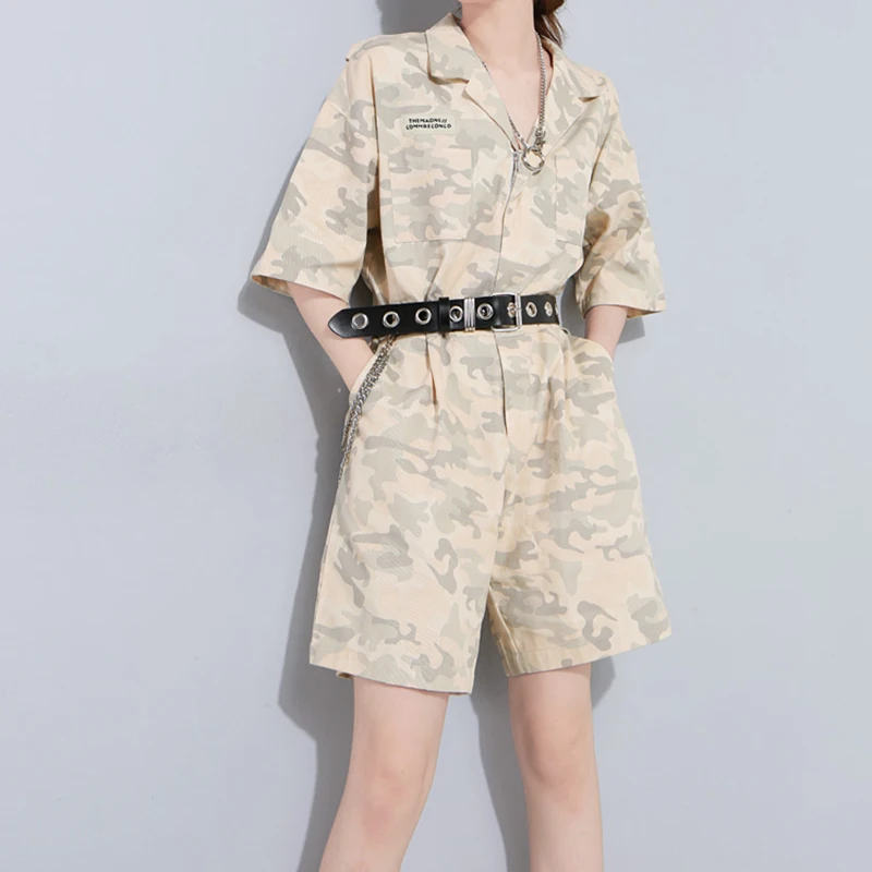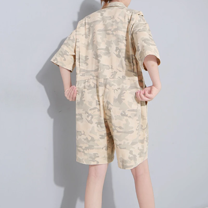 TWOTWINSTYLE Camouflage Overalls For Women Short Sleeve High Waist Pocket Big Size Playsuits 2018 Summer Fashion Casual Clothing