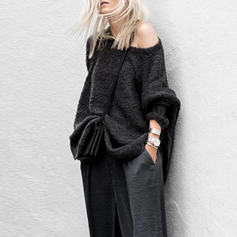 TWOTWINSTYLE Casual Knitted Pullover Sweater Women Batwing Long Sleeve Black Knitted Tops Female Big Sizes 2018 Autumn Winter