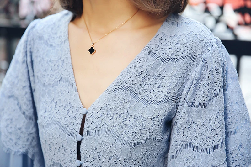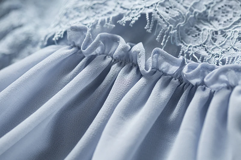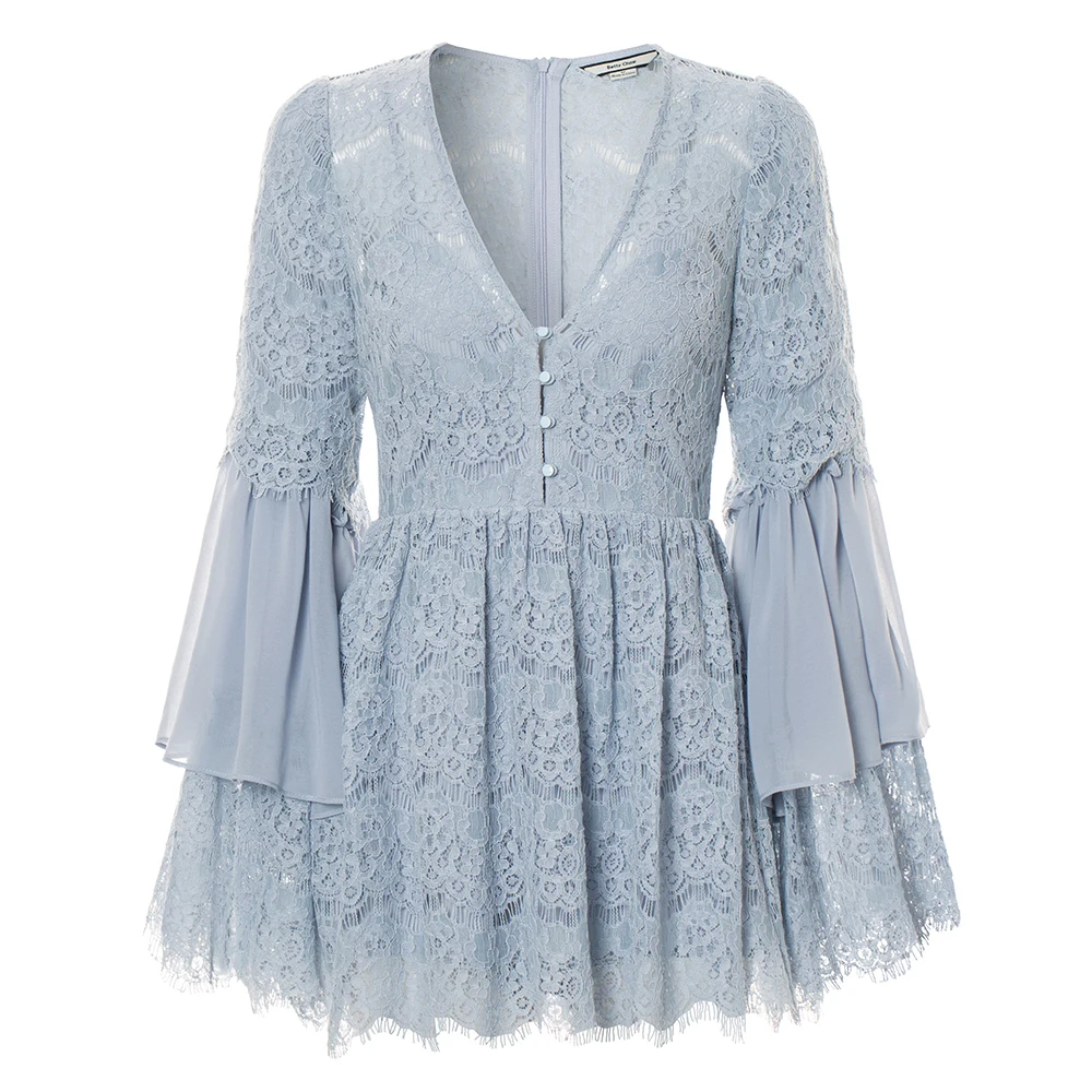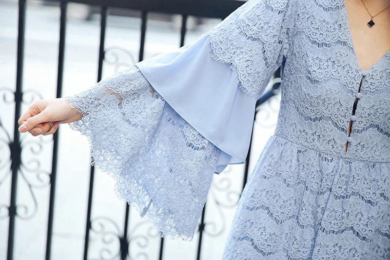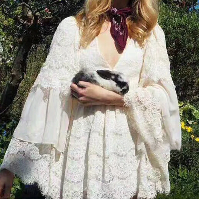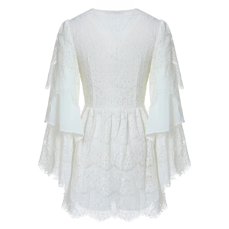 TWOTWINSTYLE Lace Playsuits For Womne Chiffon Patchwork V Neck Flare Sleeve Tunic High Waist Jumpsuit Short Rompers Summer Sweet