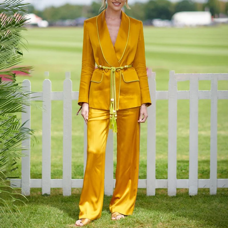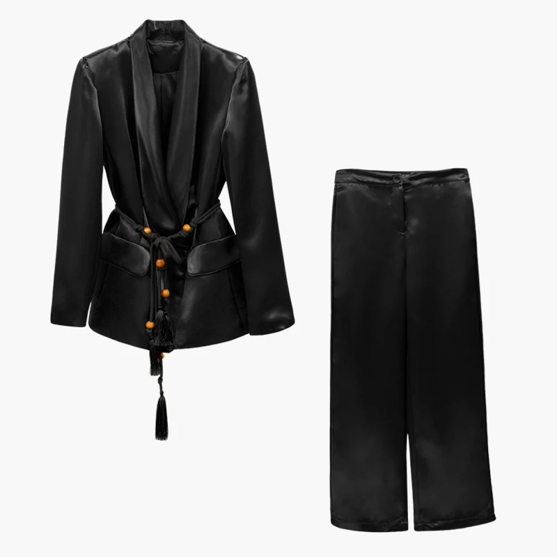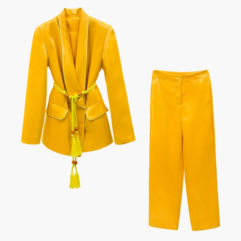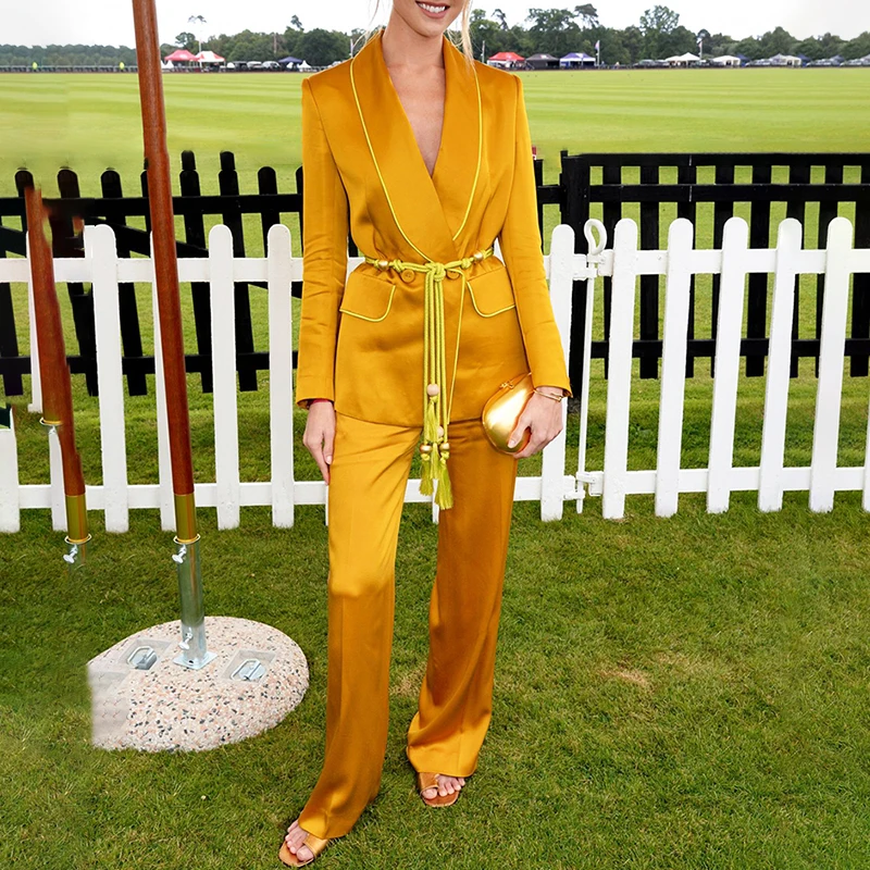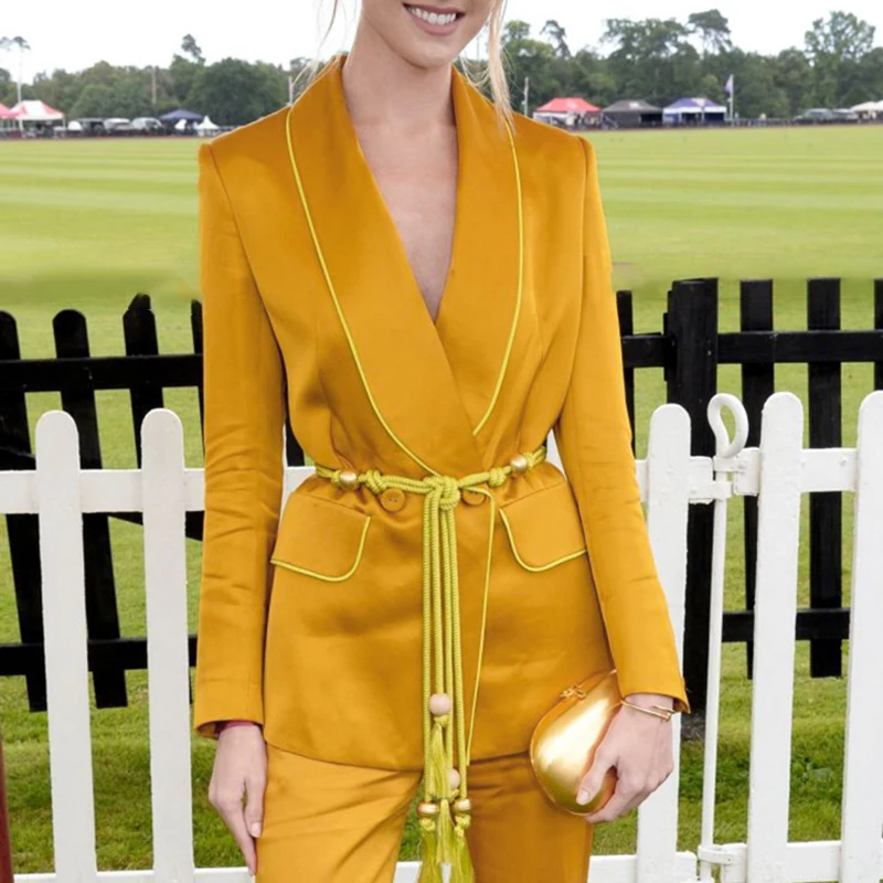 TWOTWINSTYLE Lace Up Women’s Suits Long Sleeve Blazer Coats High Waist Wide Leg Pants Two Piece Sets 2018 Autumn Fashion Style