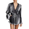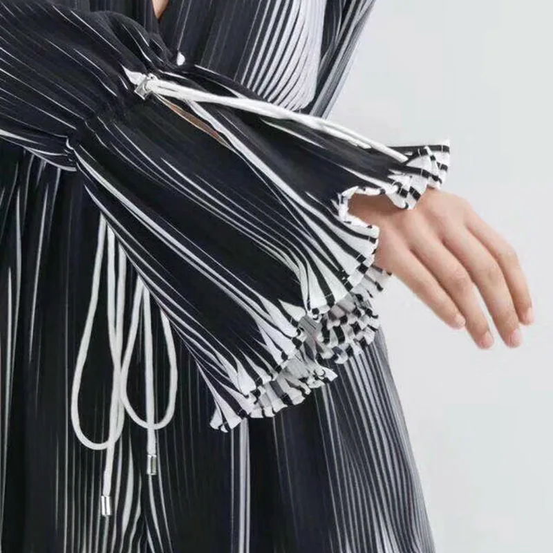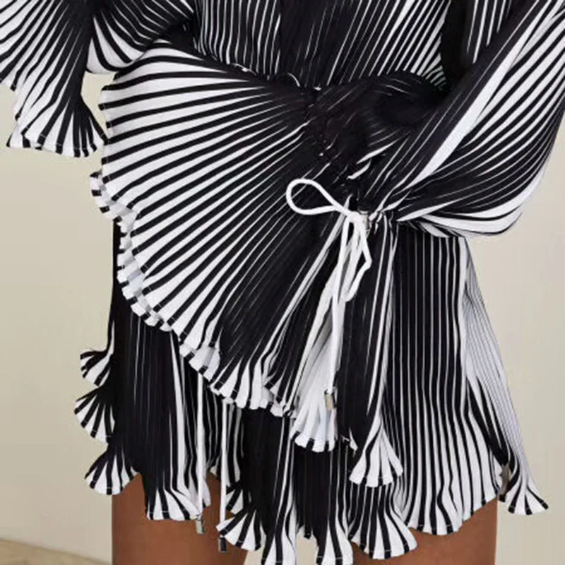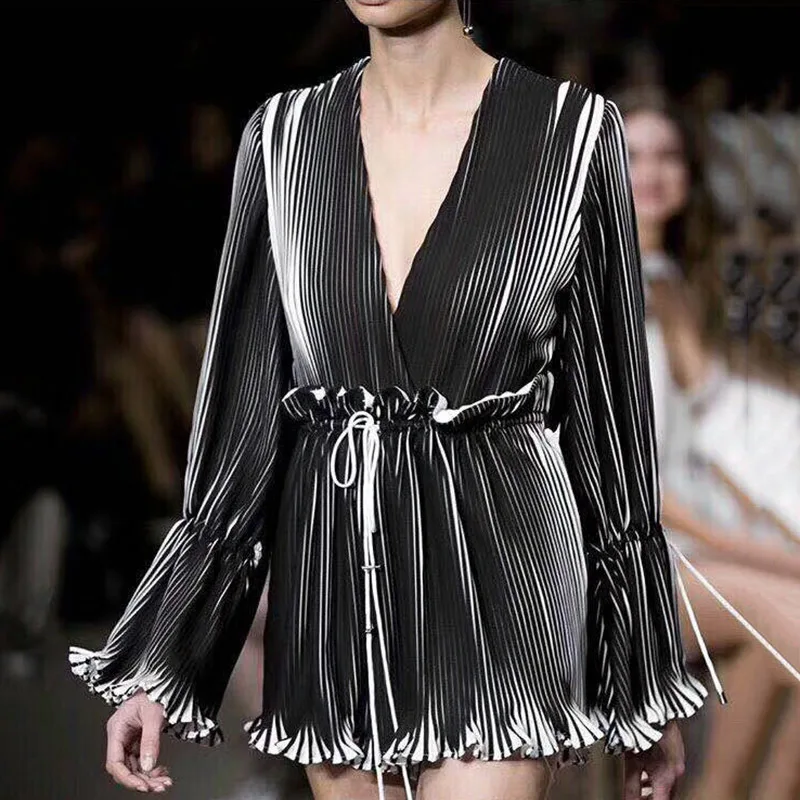 TWOTWINSTYLE Pleated Playsuits Female V Neck Flare Sleeve Draw String Lace Up High Waist Mini Trousers Summer Sexy 2018 Clothing