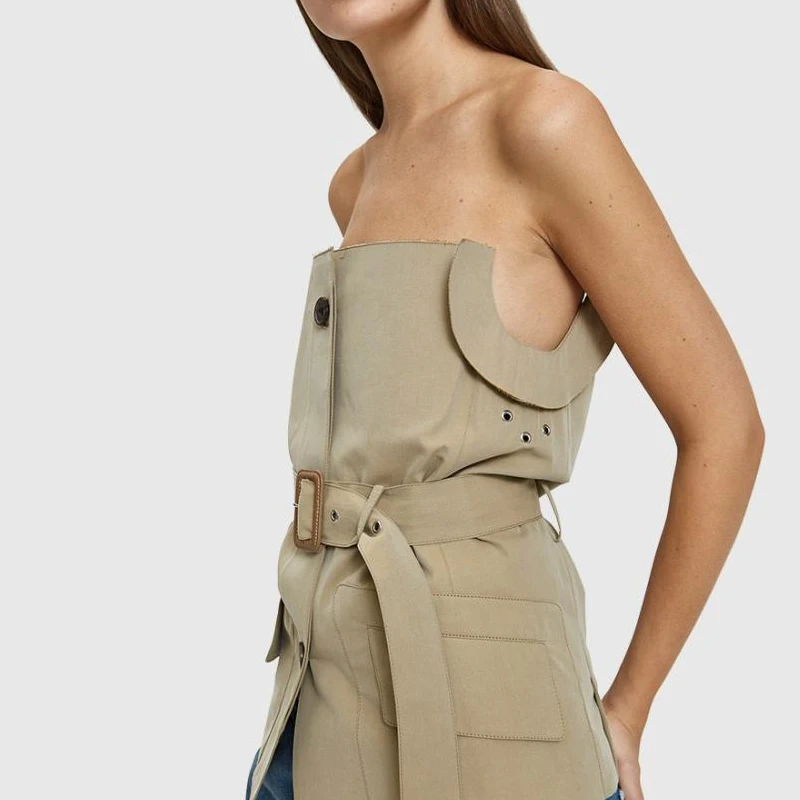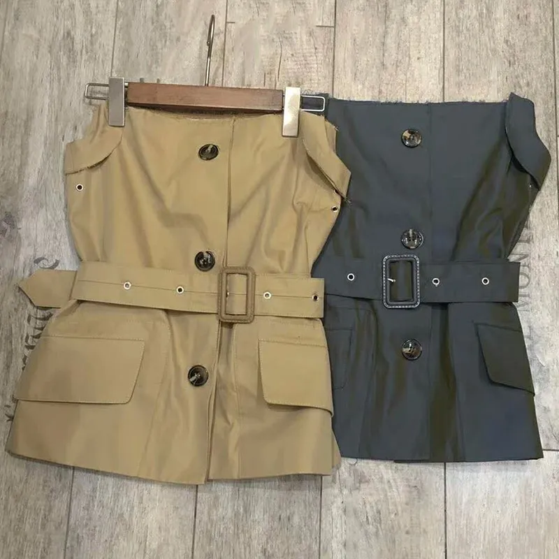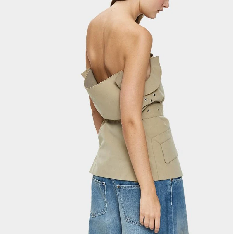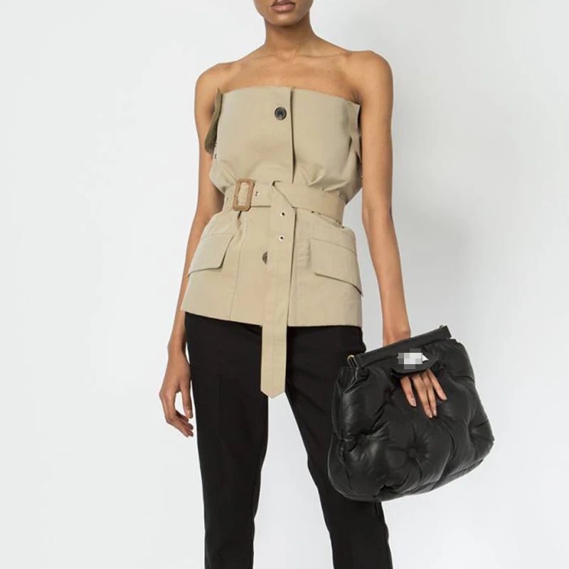 TWOTWINSTYLE Strapless Waistcoat For Women Sexy Sashes High Waist Backless Women’s Sleeveless Jacket Summer Fashion OL Clothing