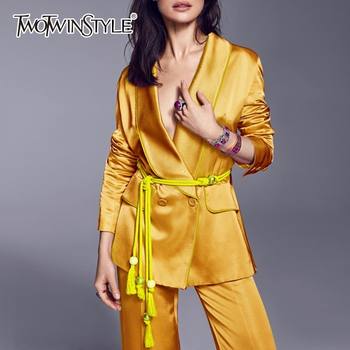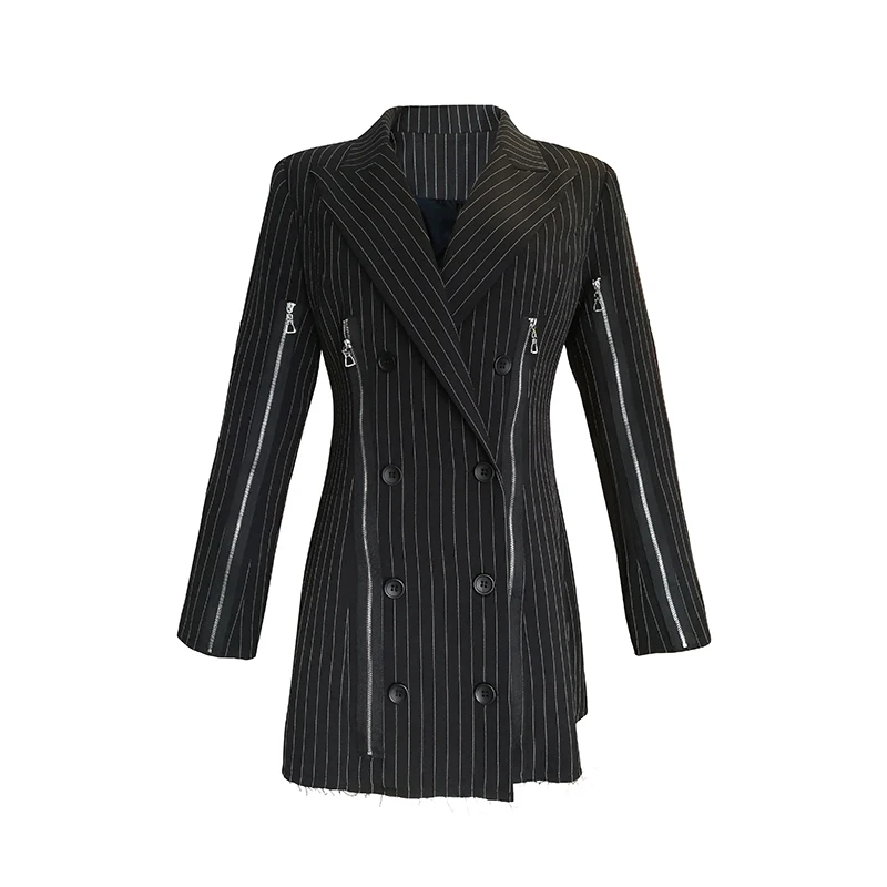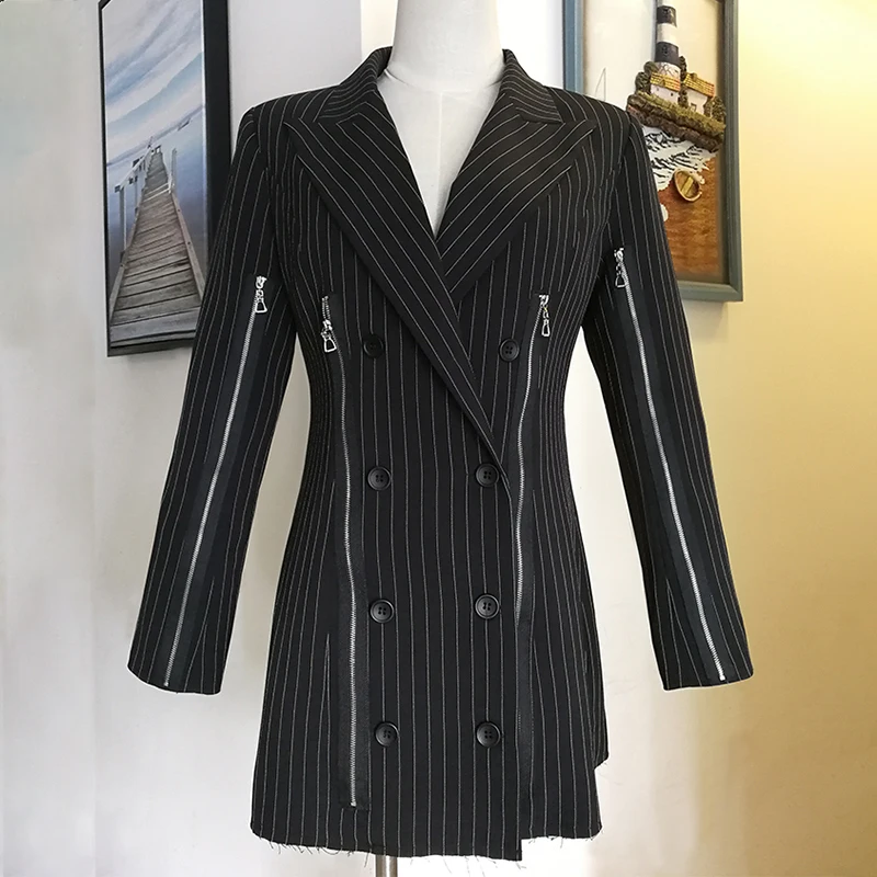 TWOTWINSTYLE Striped Women’s Blazer Double Breasted Zipper Long Sleeve Jacket Female Casual Autumn 2018 Fashion Clothing OL New
