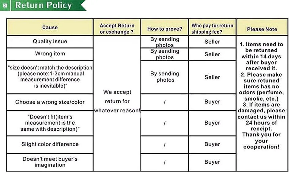 • If you do not want the product you’ve received you may request a refund but you must return the item at your expense and the item must be unused.
