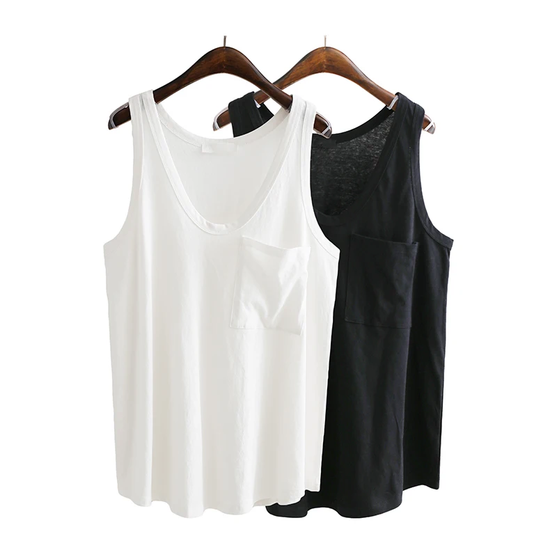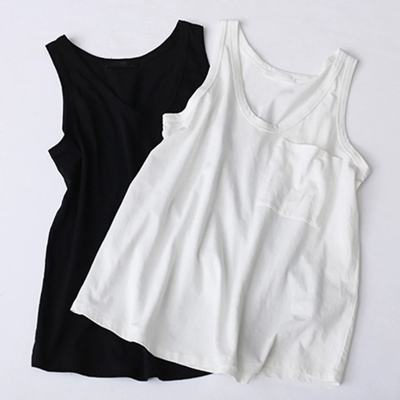 TWOTWINSTYLE V Neck Vest Top For Women Basic Pocket Patchwork Big Size Female T-shirt Vests Summer 2018 Fashion Casual Clothing