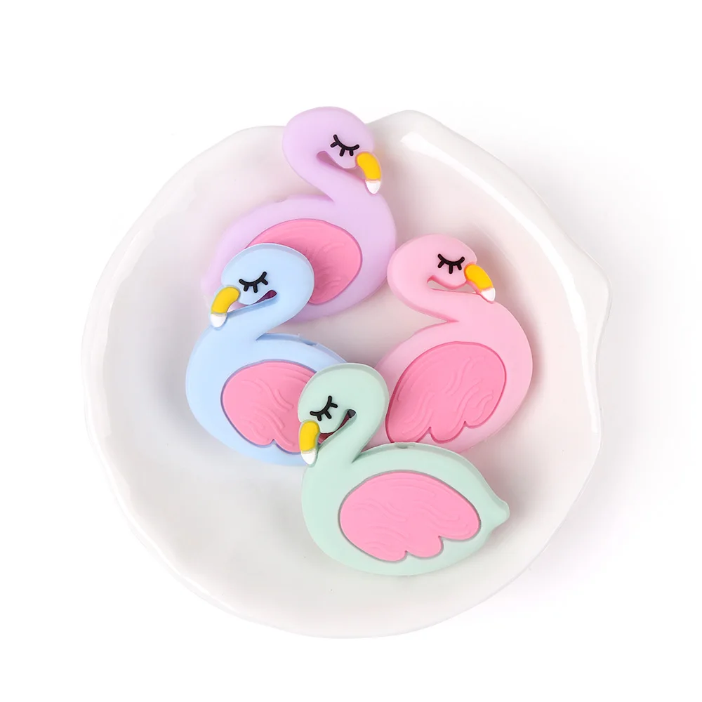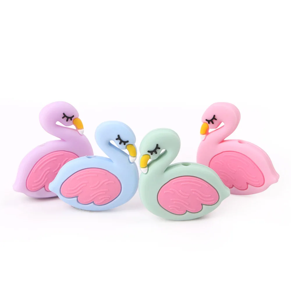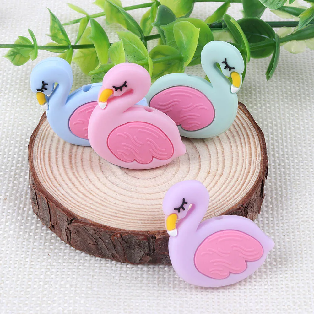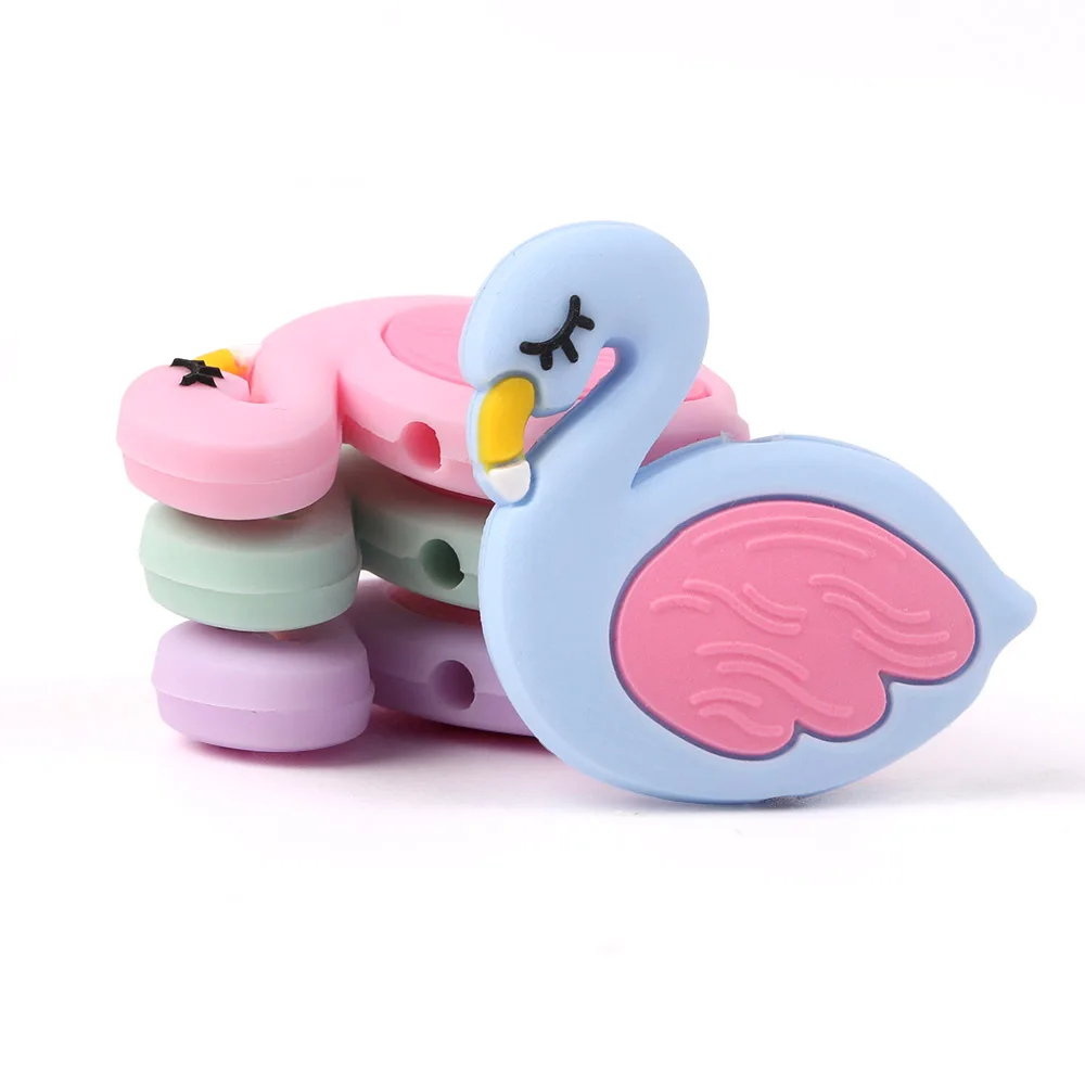 TYRY.HU 50PC Cute Swan Silicone beads BPA Free for Making Baby Nursing Chewing Necklace Food Grade Bird Teether Toy Accessories