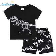 TZ566 Summer Baby kids Pajamas Set Cotton Children Short Sleeve sleepwear Cartoon dinosaur pattern Boys pyjamas girls home suit