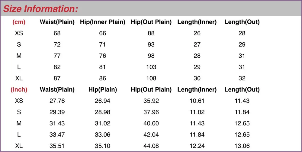 XS S M L XL