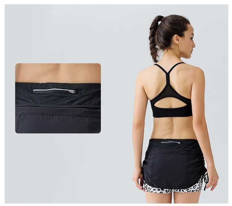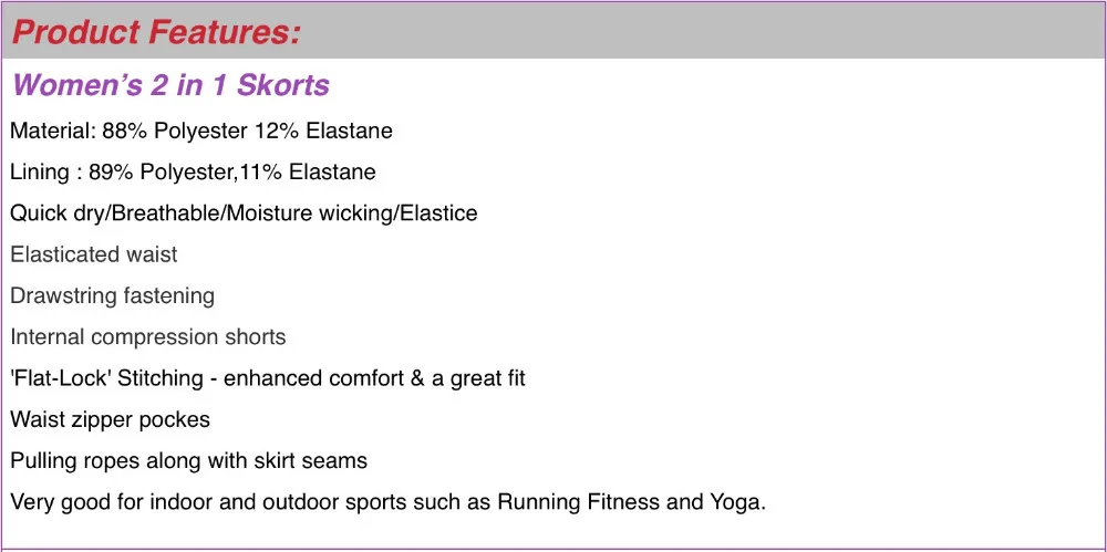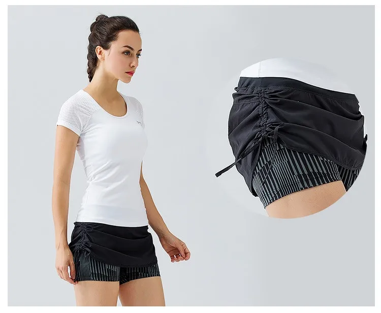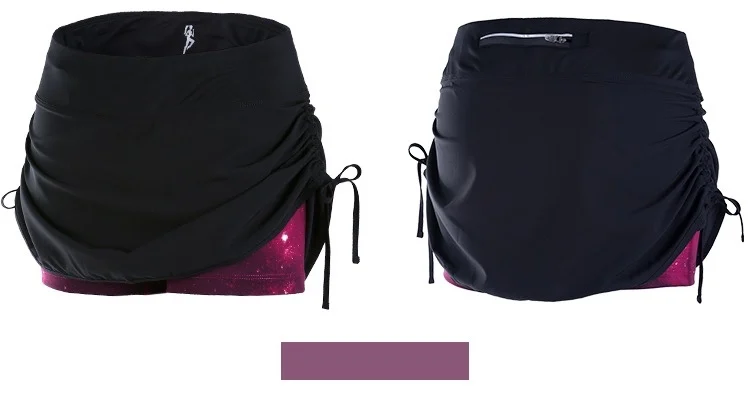 U Women’s 2 in 1 Running Shorts Side Drawstring Zipper Pocket Tennis Skorts Fitness Yoga Training Outdoor Sports