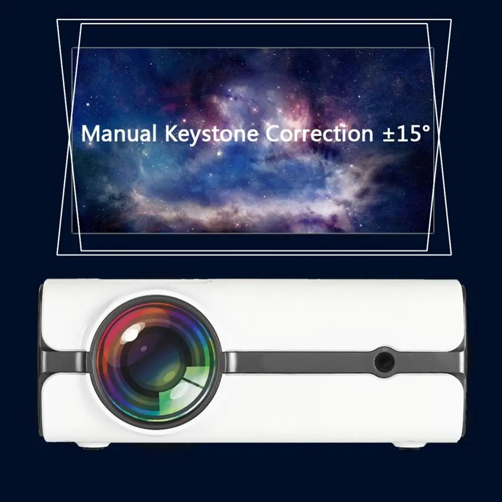 This video projector provides you with a super clear 1080P vision with realistic colors and a stereo surrounding sound to let you theater effect at home. Free switching of 16:9 and 4:3 and long projection distance of 1.31-5.25yd make screen super large. And optical trapezium adjustment makes sure a standard rectangular picture. Let you enjoy movies without being bothered.