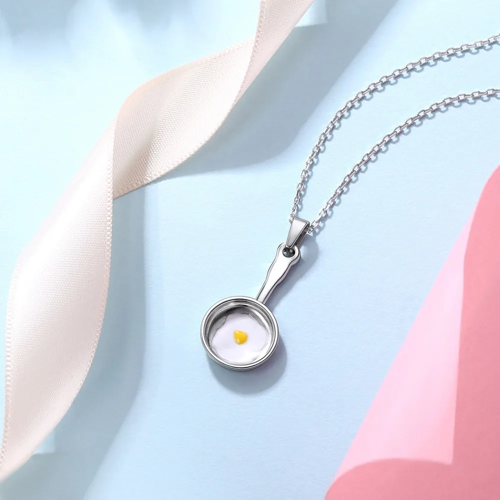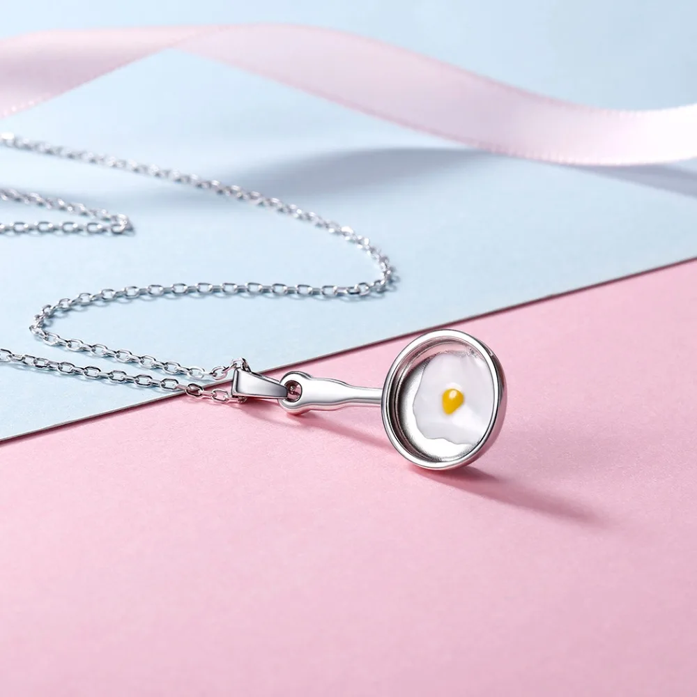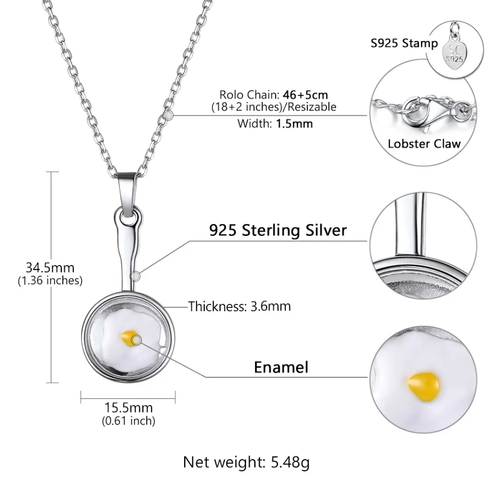 U7 Brand 925 Sterling Silver Frying Pan Eggs Necklace Pendant Statement Choker For Women Jewelry Rolo Chain Necklace 2018 New