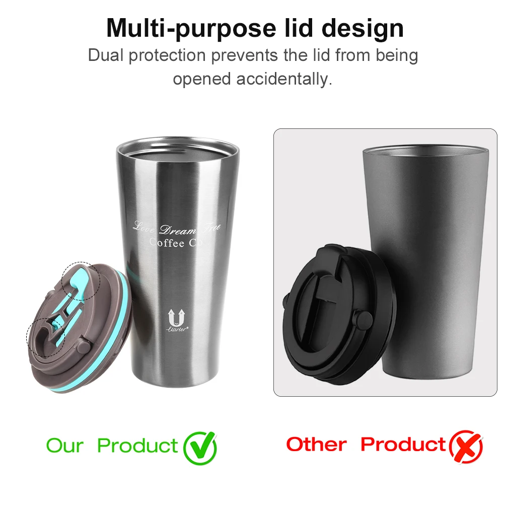 UARTER 500ml 304 Stainless Steel Thermo Cup Travel Coffee Mug with Lid Car Water Bottle Vacuum Flasks for Hot Cold Drinks