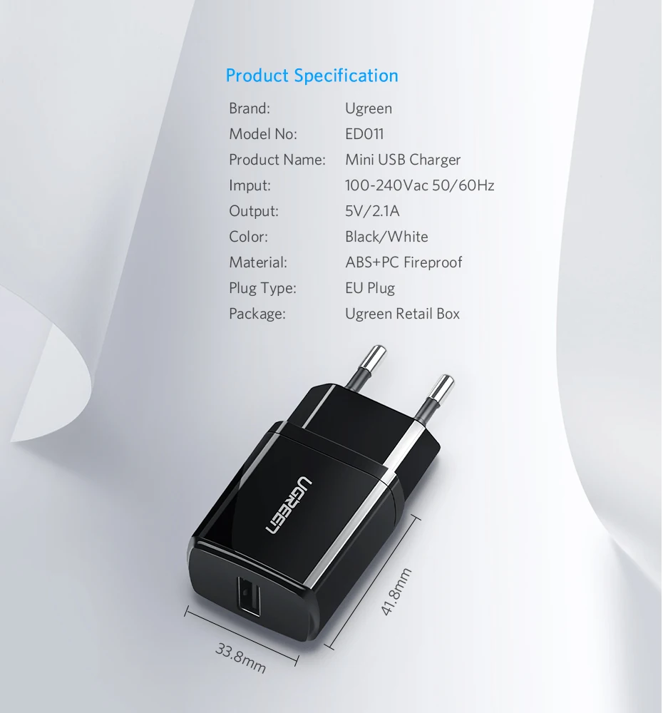 Ugreen 5V 2.1A USB Charger for iPhone X 8 7 iPad Fast Wall Charger EU Adapter for Samsung S9 Xiaomi Mi 8 Mobile Phone Charger
