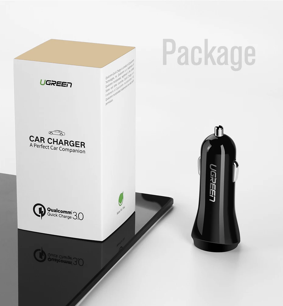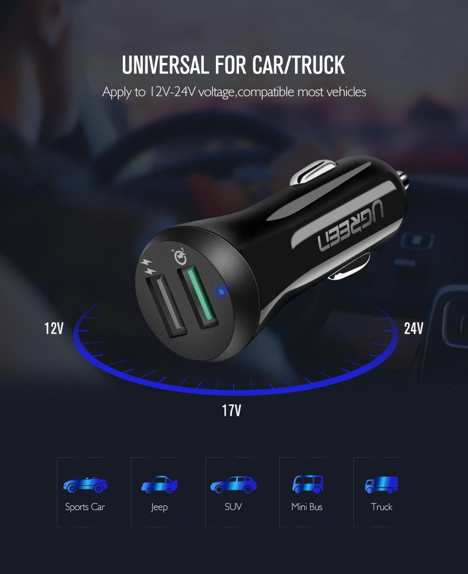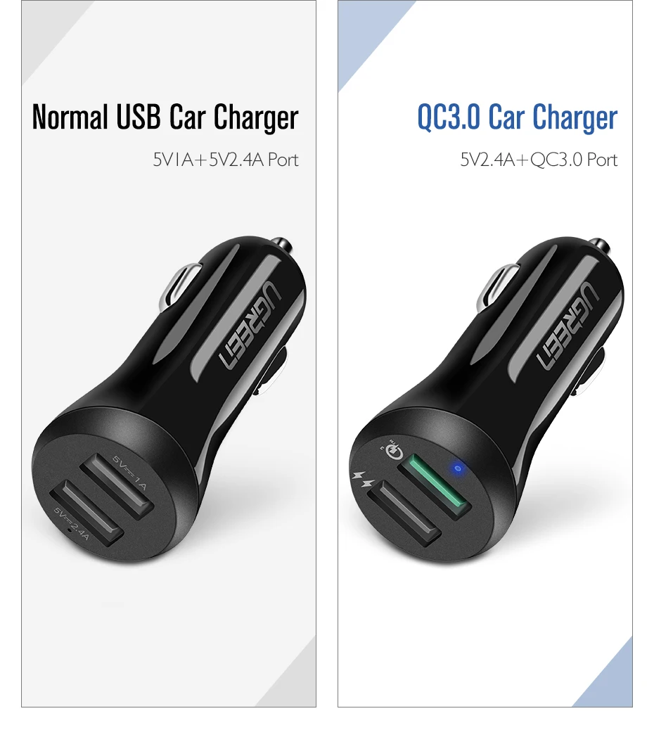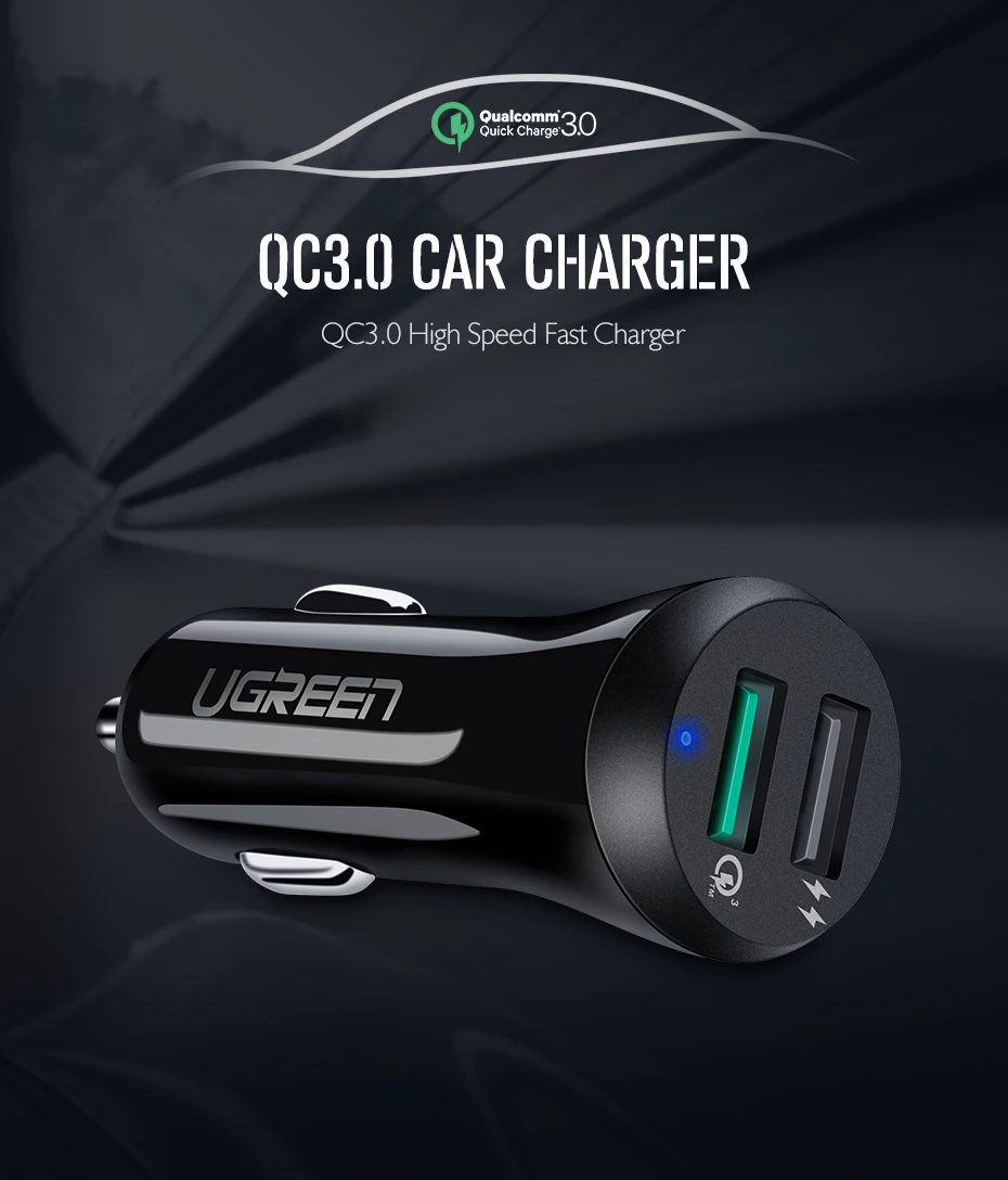 Ugreen Car USB Charger Quick Charge 3.0 Mobile Phone Charger Dual USB Fast QC 3.0 Car Charger for Samsung Xiaomi Tablet Charger