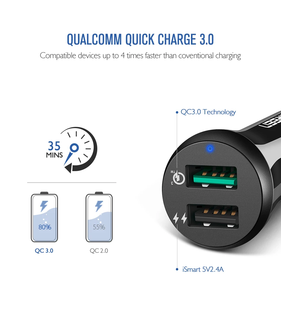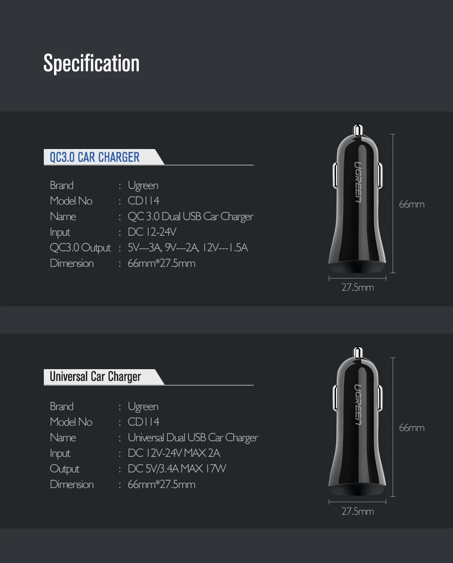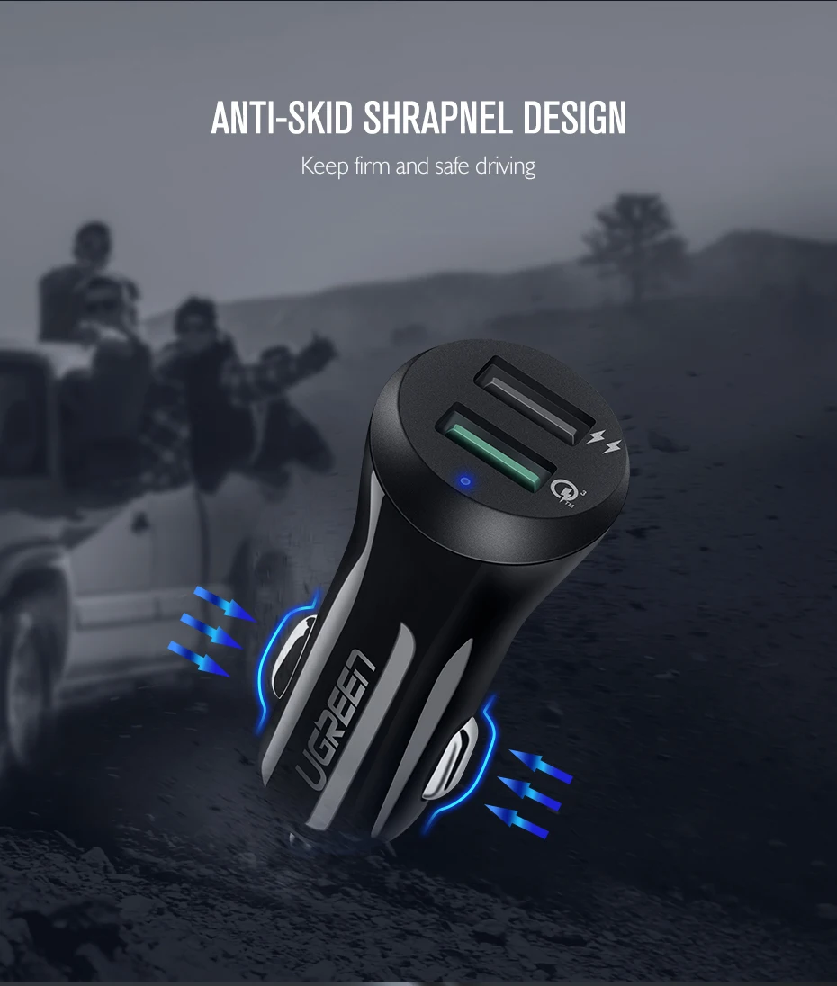 Ugreen Car USB Charger Quick Charge 3.0 Mobile Phone Charger Dual USB Fast QC 3.0 Car Charger for Samsung Xiaomi Tablet Charger