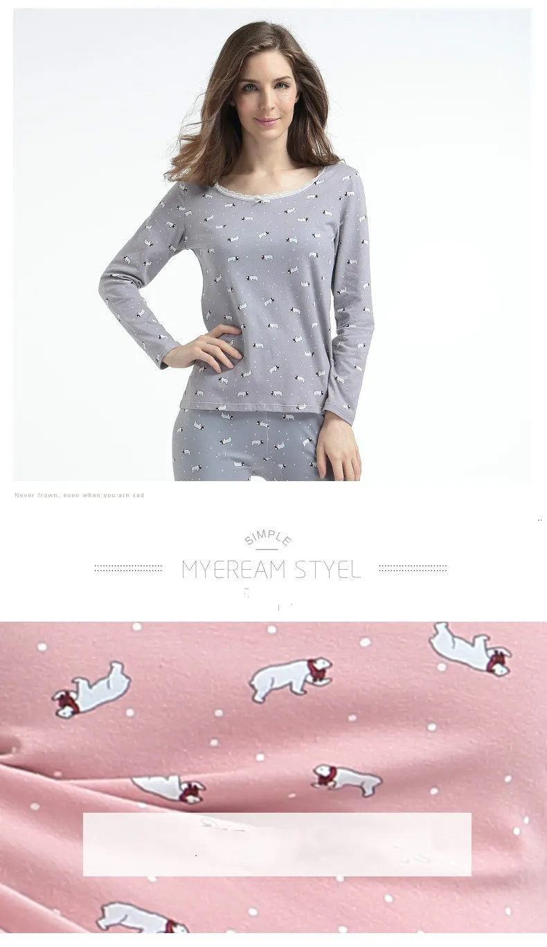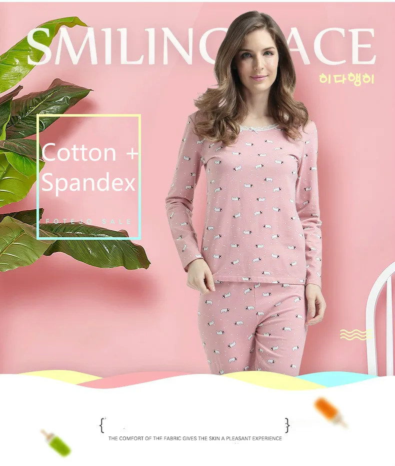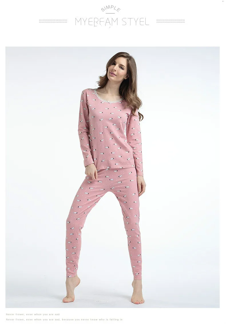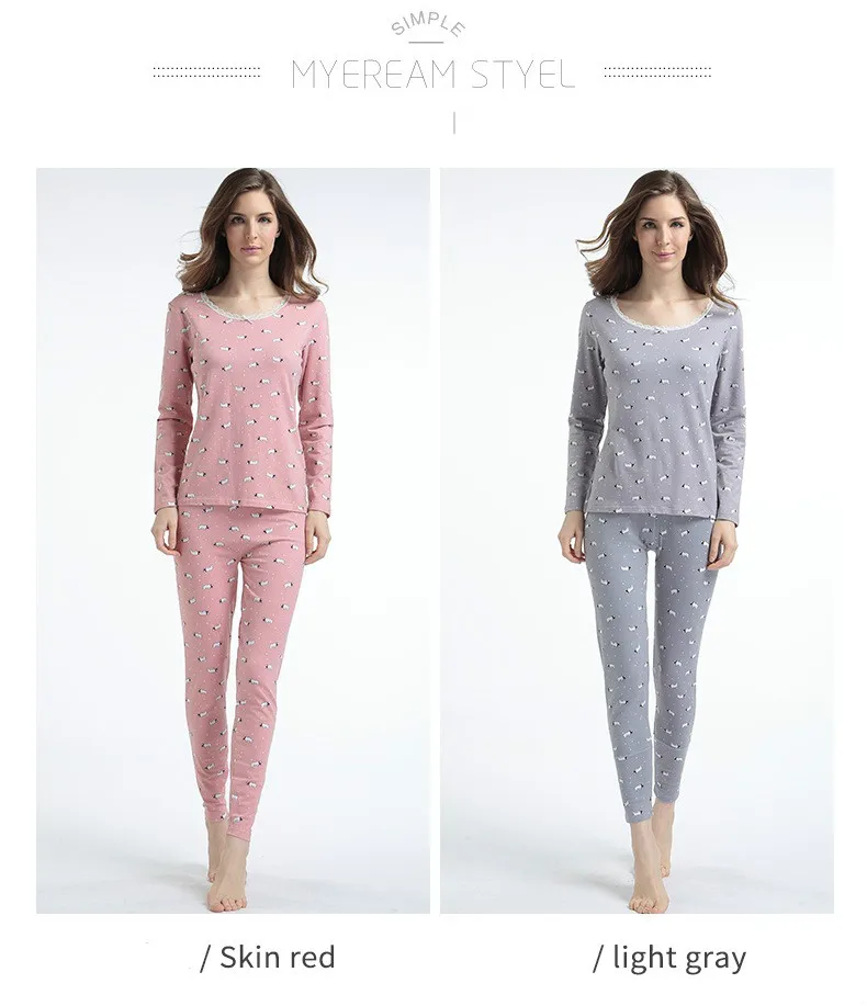 UIECOE Women Warm Thermal Underwear 95% Cotton Print Floral Woman Long Johns Long Sleeve Thermal Clothing Underwears Sets