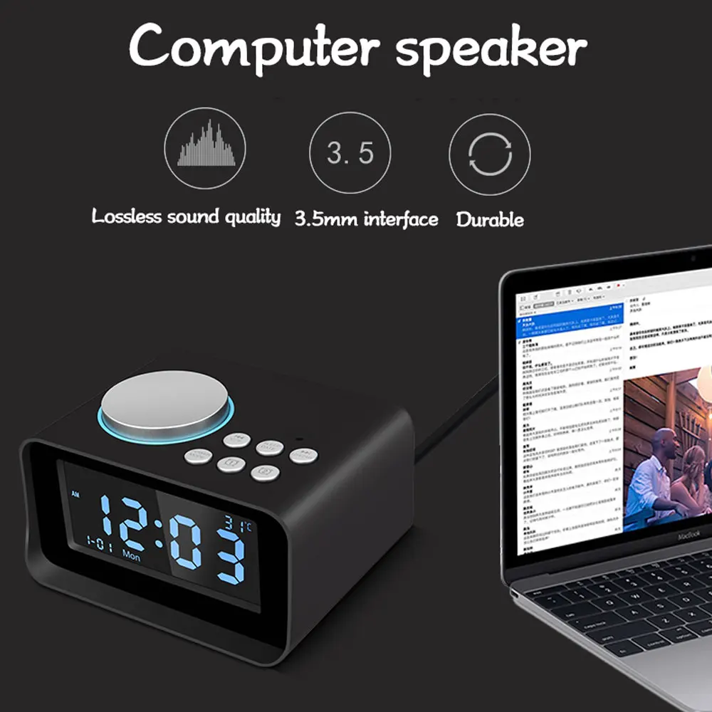 UK/EU/US Plug Multi-function Digital LED Alarm Clock Wireless Bluetooth Speaker Smart LED Night Light Table Lamp Alarm Clock