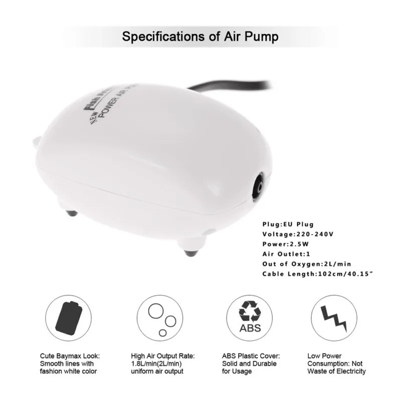 • 1.8L/min(2L/min) uniform air output, high air output rate.