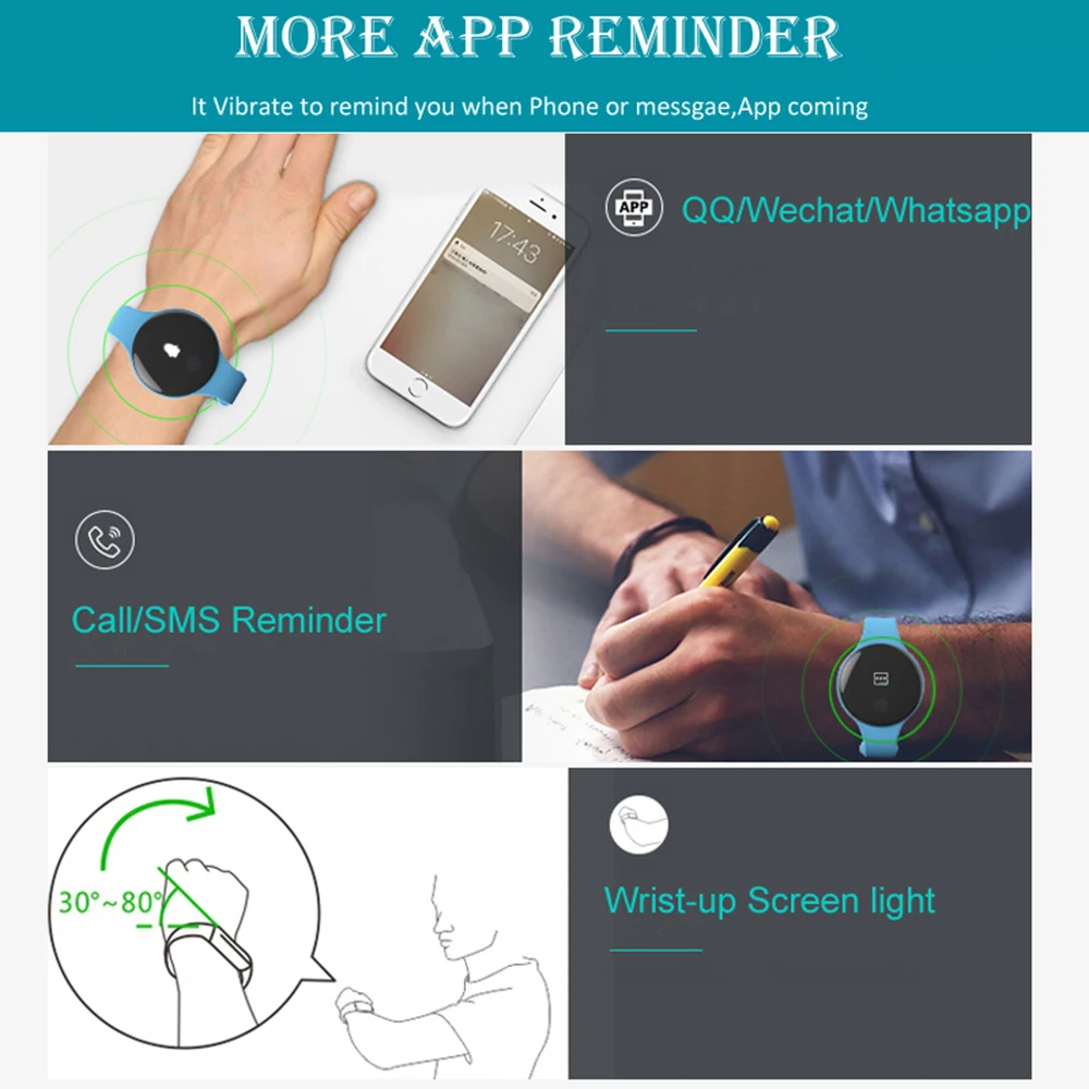 Smart bracelet will silently vibrates to inform you of new message, SNS, Wechat and incoming calls.