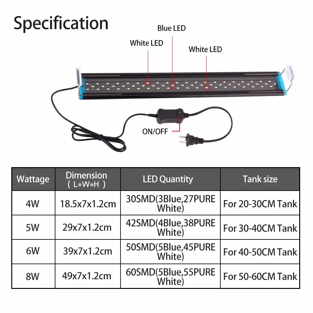 • Fit for Ultrathin LED Underwater Light Aquarium Fish Fishbowl Tank