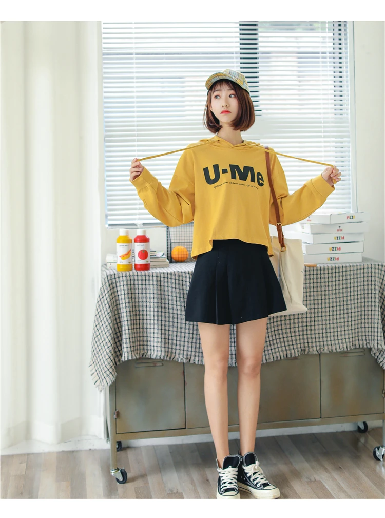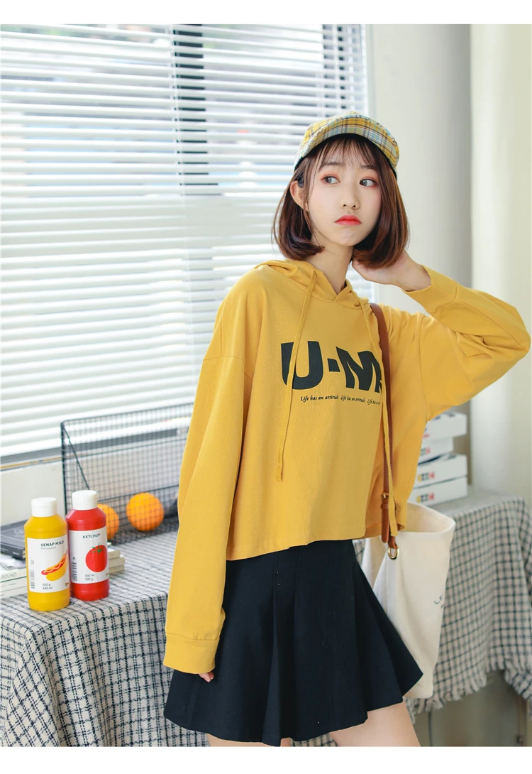 Ulzzang Harajuku K-pop Hip Hop Cropped Hoodies Streetwear Women Autumn Preppy Style Oversized Cropped Hoodie Women Sweatshirt