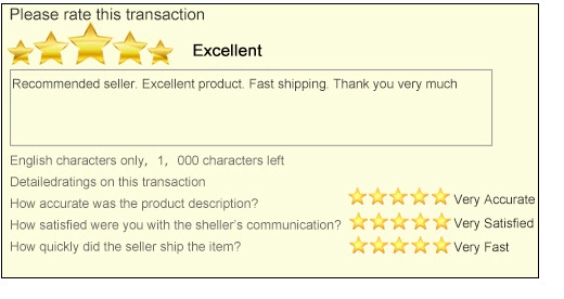 1:If you are satisfied with our item and service, please leave you positive feedback with 5 stars, or with good picture.