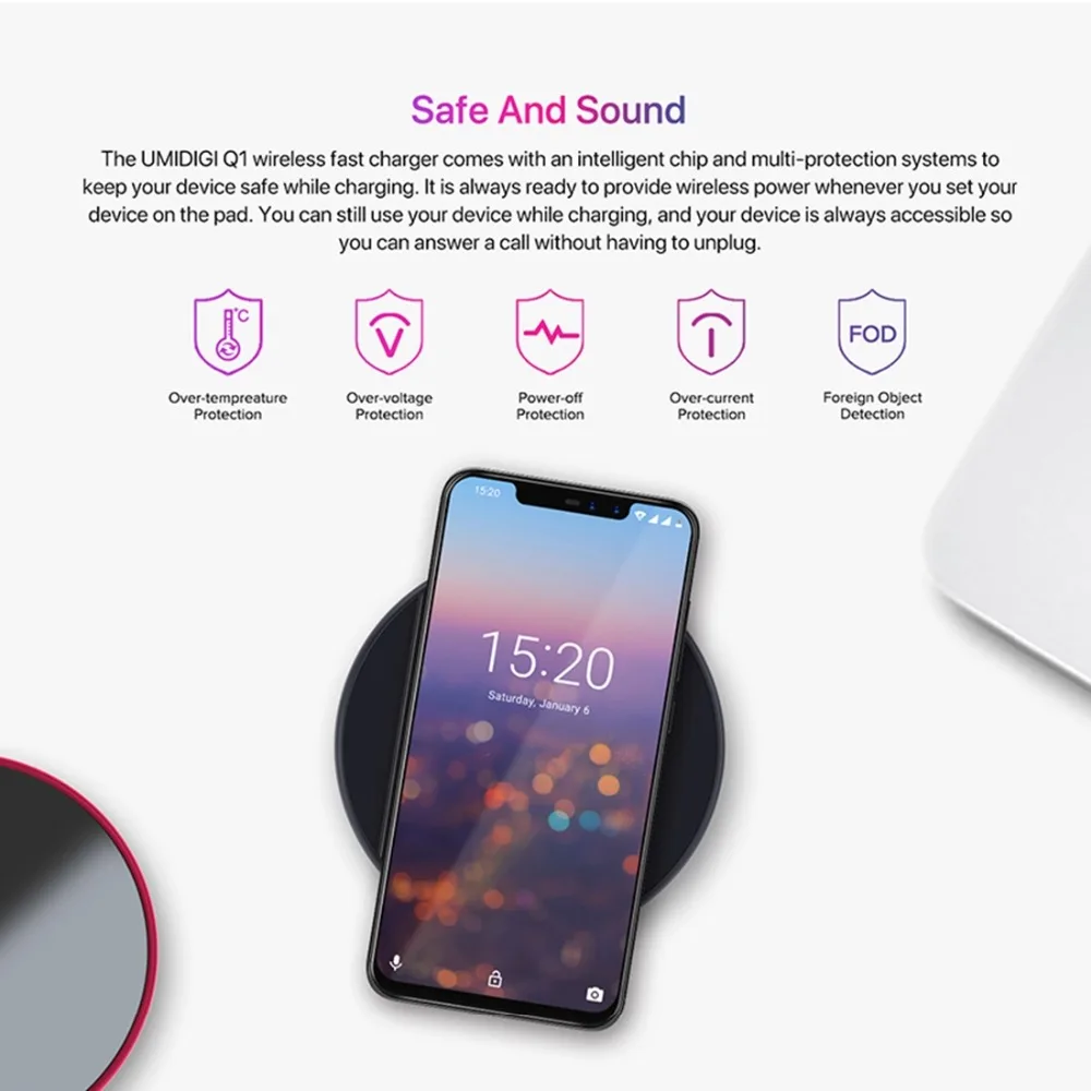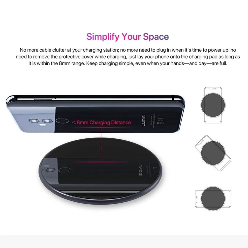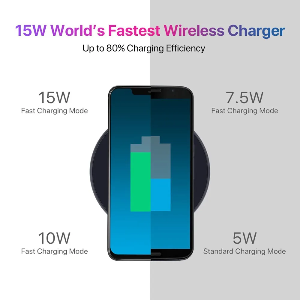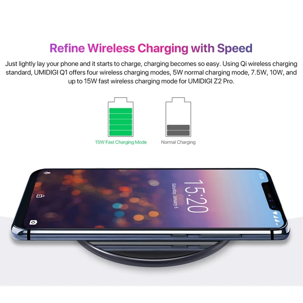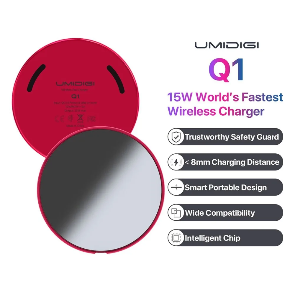 UMIDIGI Q1 15W Wireless fastest Charger for Samsung Galaxy S9 S8 S7 Wireless Charger for iPhone 8/X/8 Plus Wireless Charging Pad