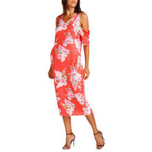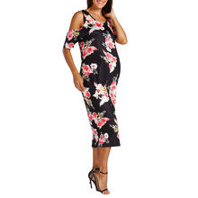 ummer Sexy Maternity Clothing Dress Mother Women Floral Print Cold Shoulder Body-Con Short Sleeve Dress Pregnant Woman Dress