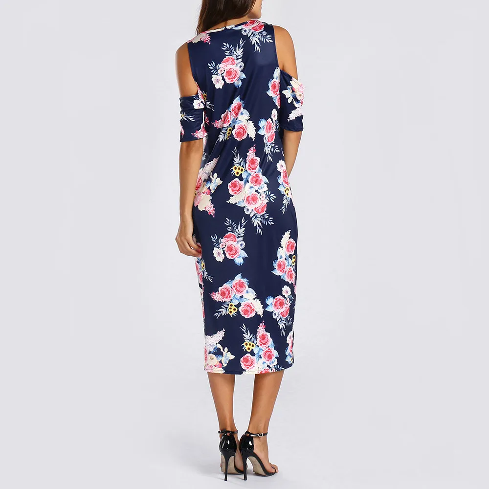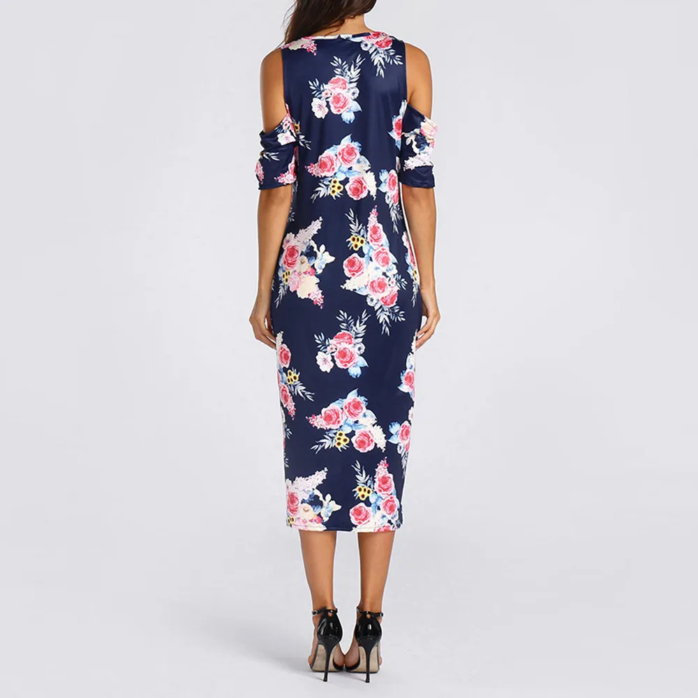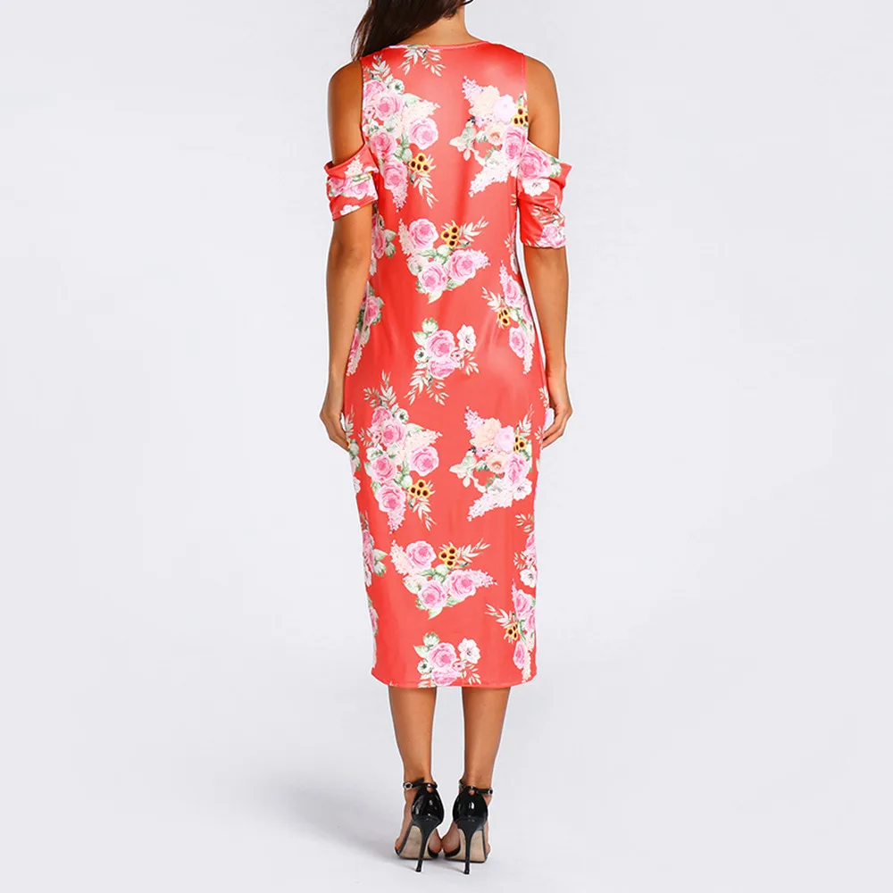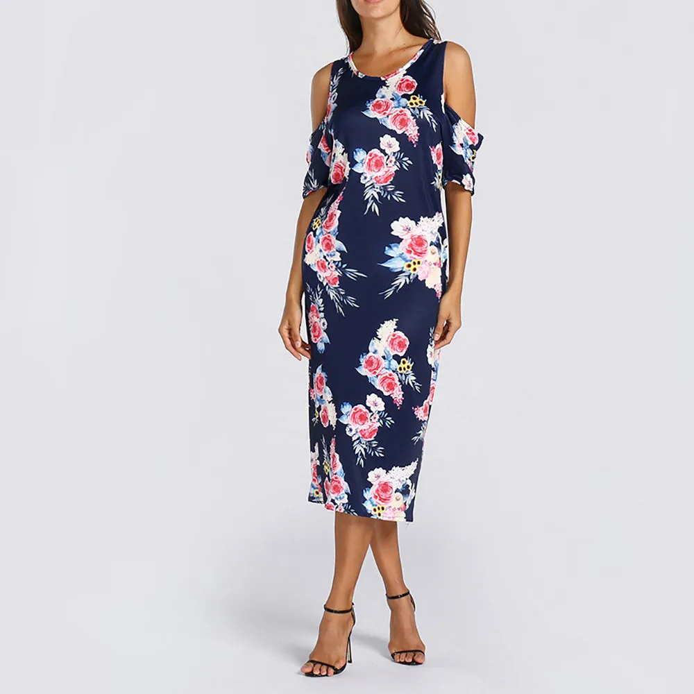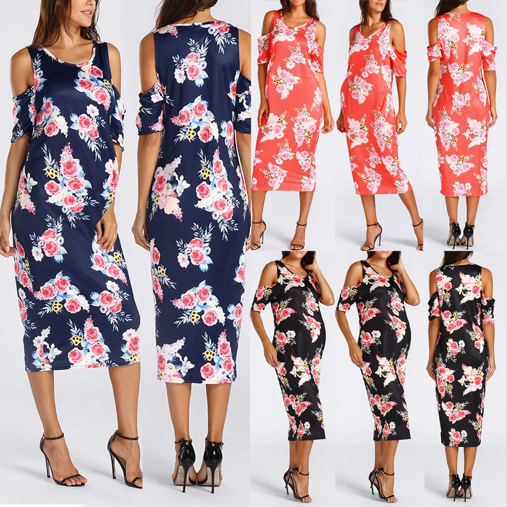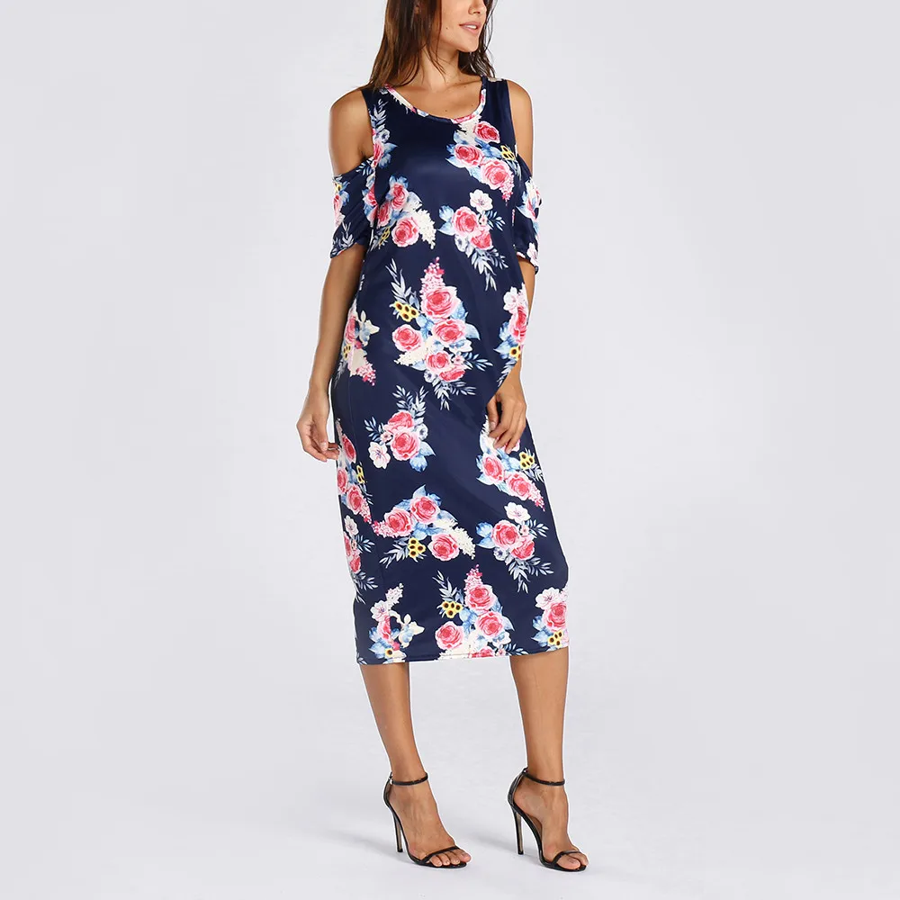 ummer Sexy Maternity Clothing Dress Mother Women Floral Print Cold Shoulder Body-Con Short Sleeve Dress Pregnant Woman Dress
