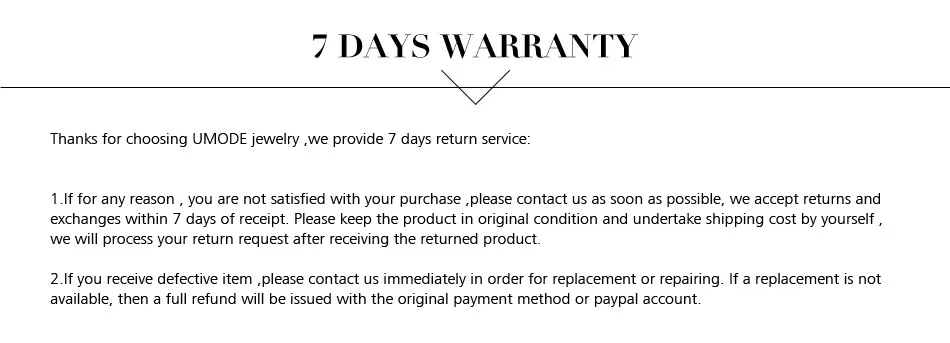 • If you did not receive the product within the guaranteed time( 45 days not including 2-5 day processing) you can request a refund or a reshipment.