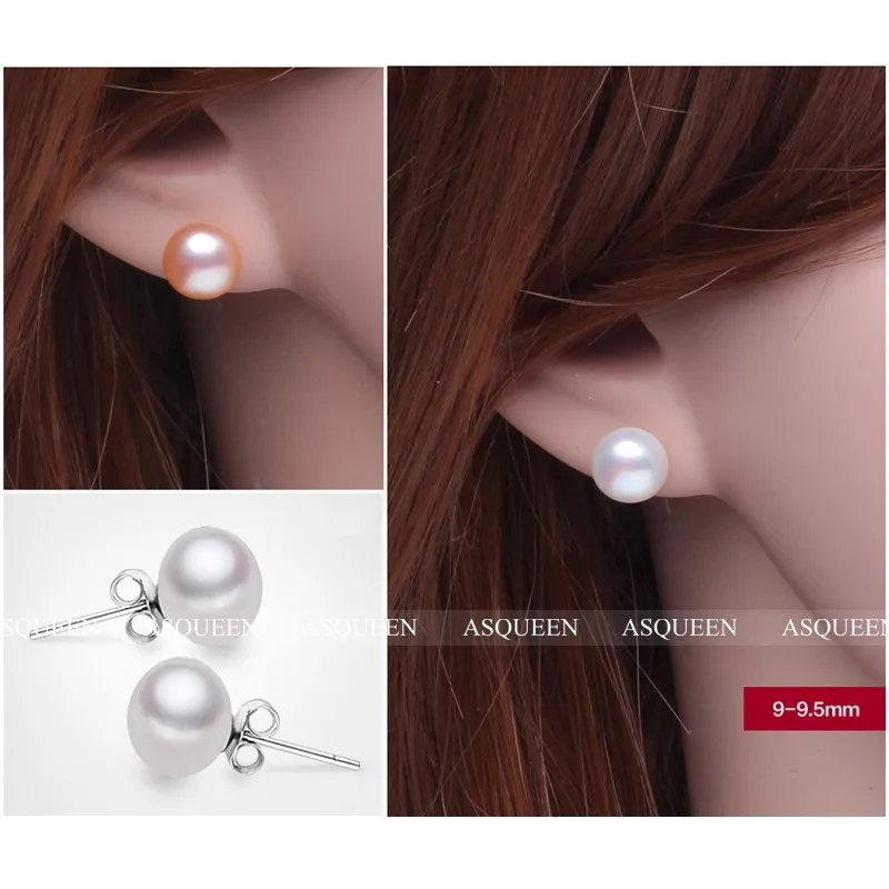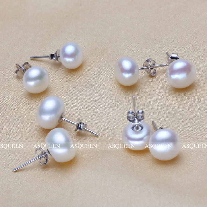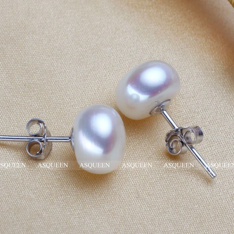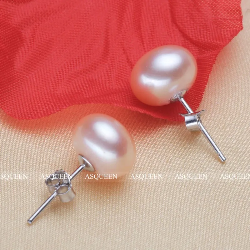 UMODE 8-9 mm 100% Natural Freshwater Pearl Earrings Jewelry 925 Sterling Silver Brincos Zircon Stud Earrings For Women AE0003