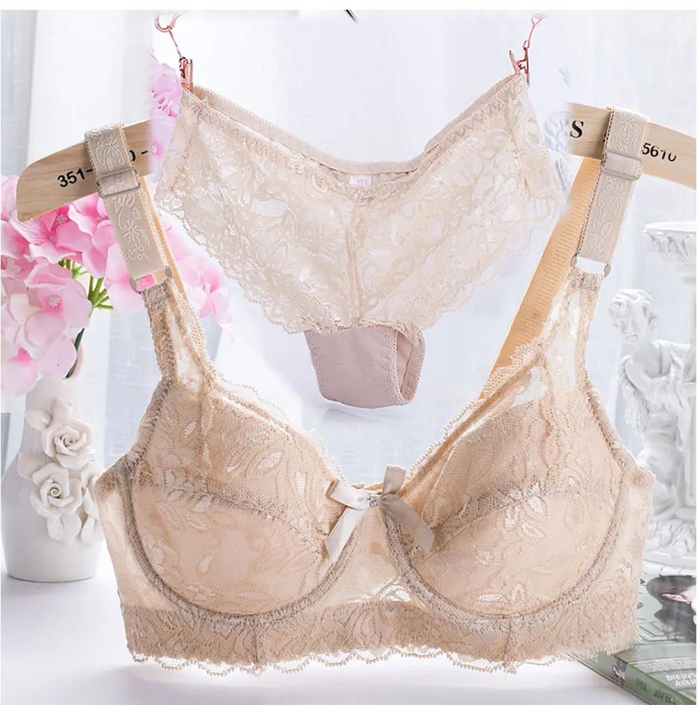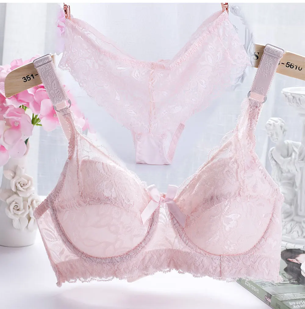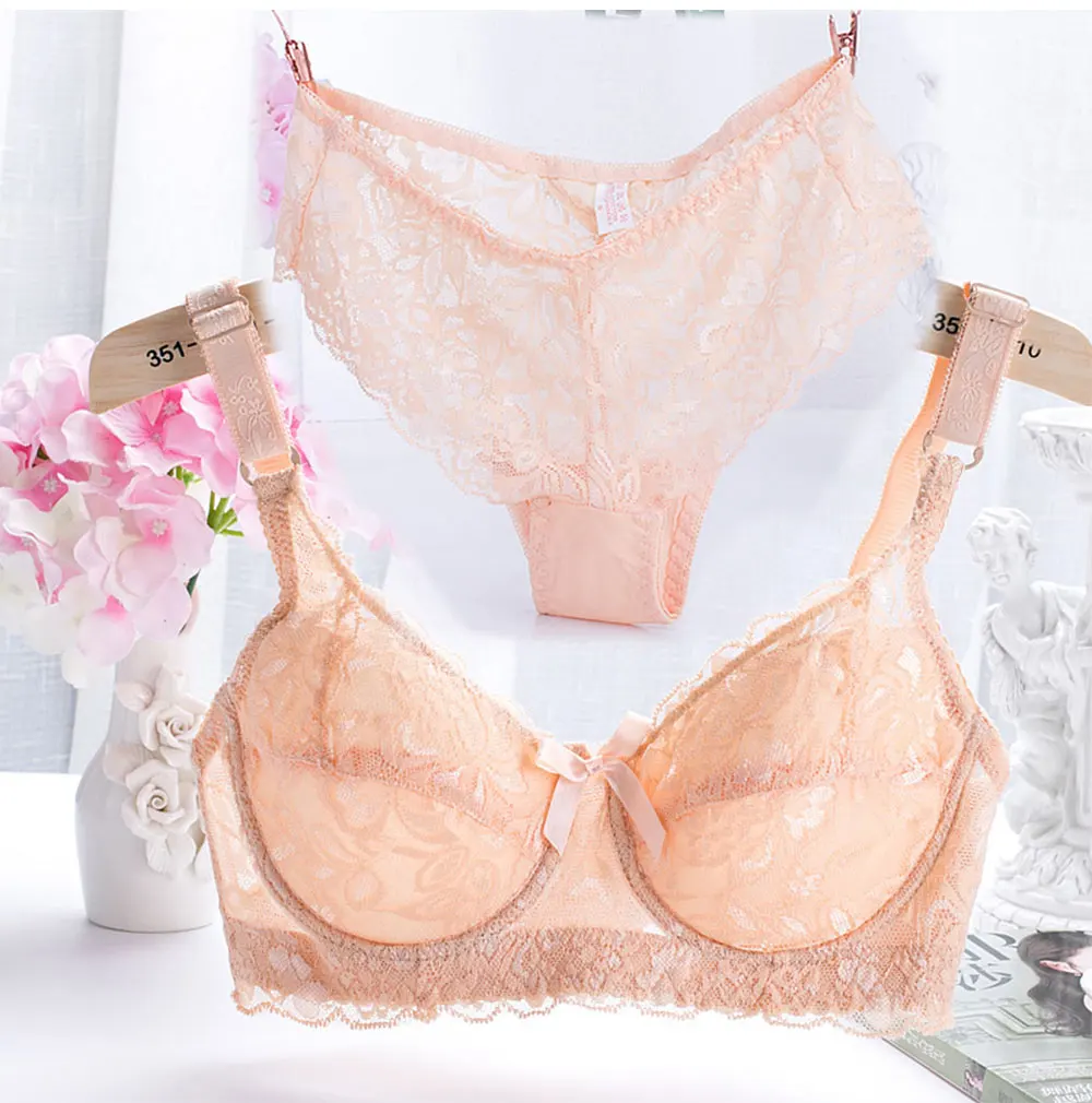 Underwear women set sexy lace embroidery bra and panty set adjustable bra ultra-thin seamless breathable briefs girl lingerie