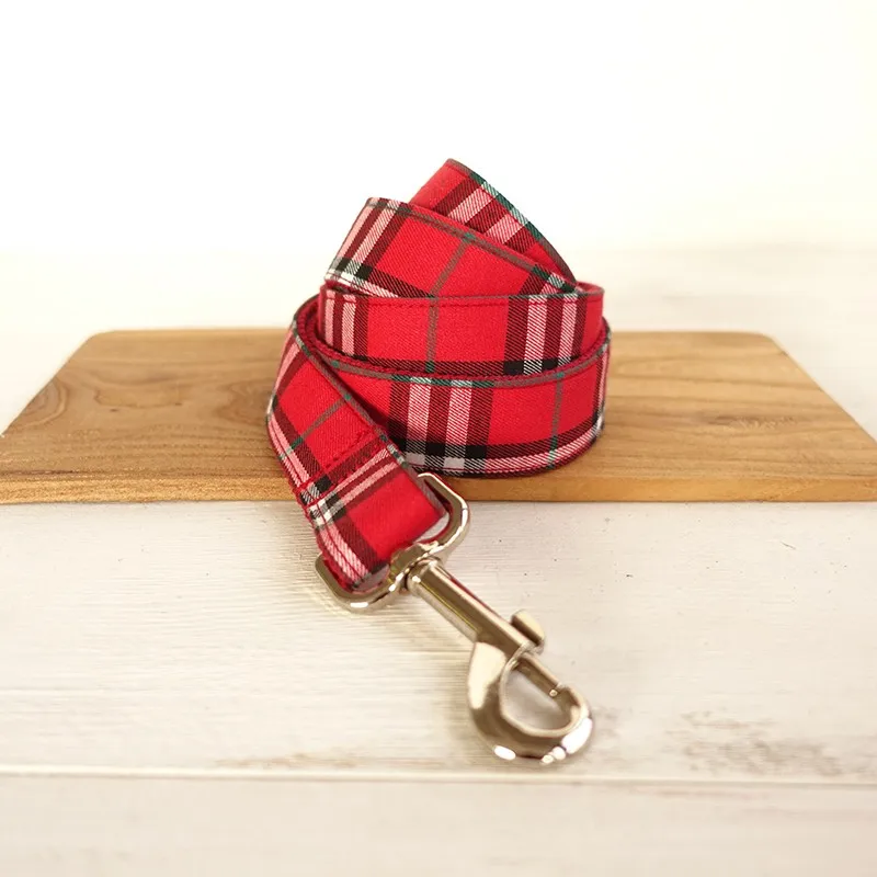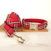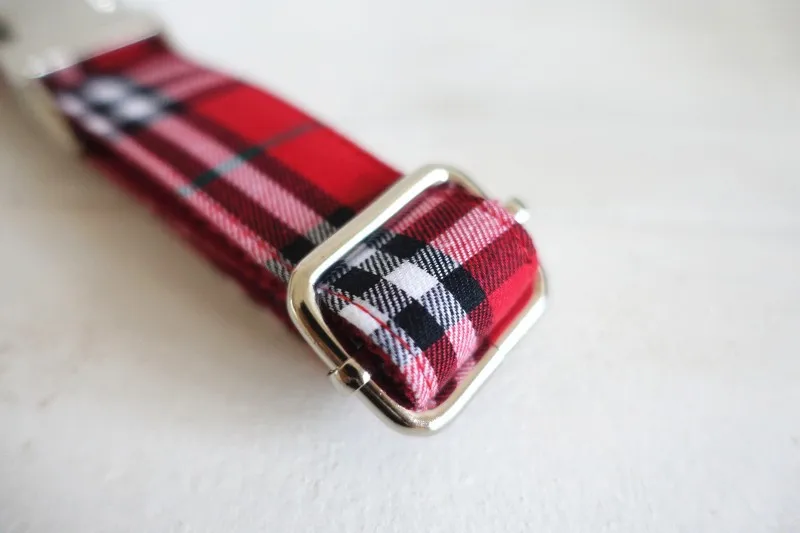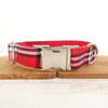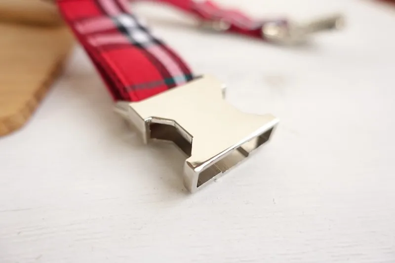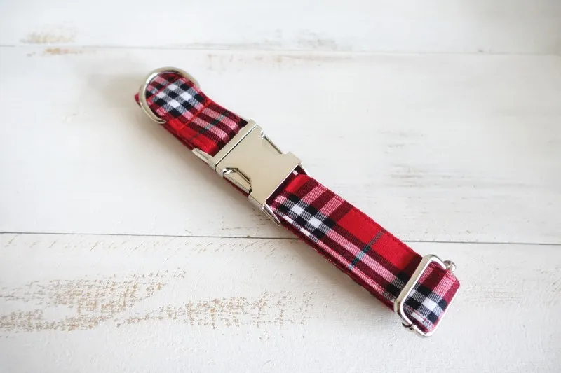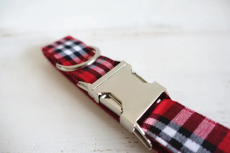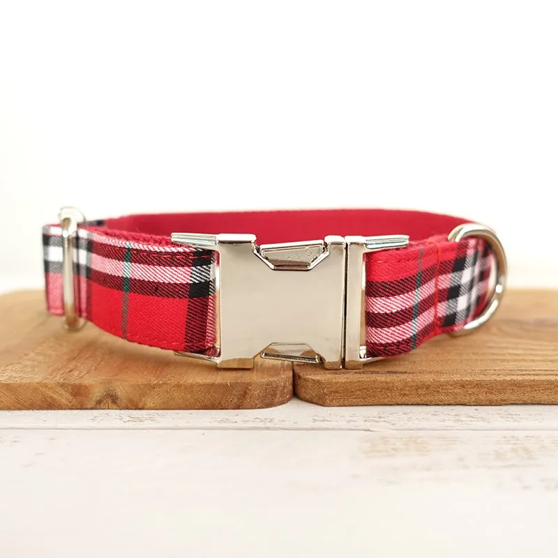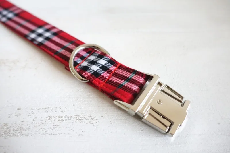 Unique Design Engraved Buckle Collar THE RED PLAID COLLAR Personalized Leash and Collar Set for Small Medium Lager dog