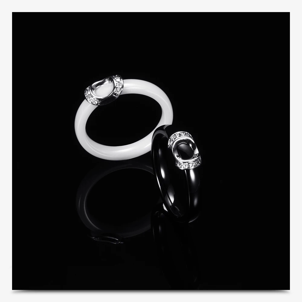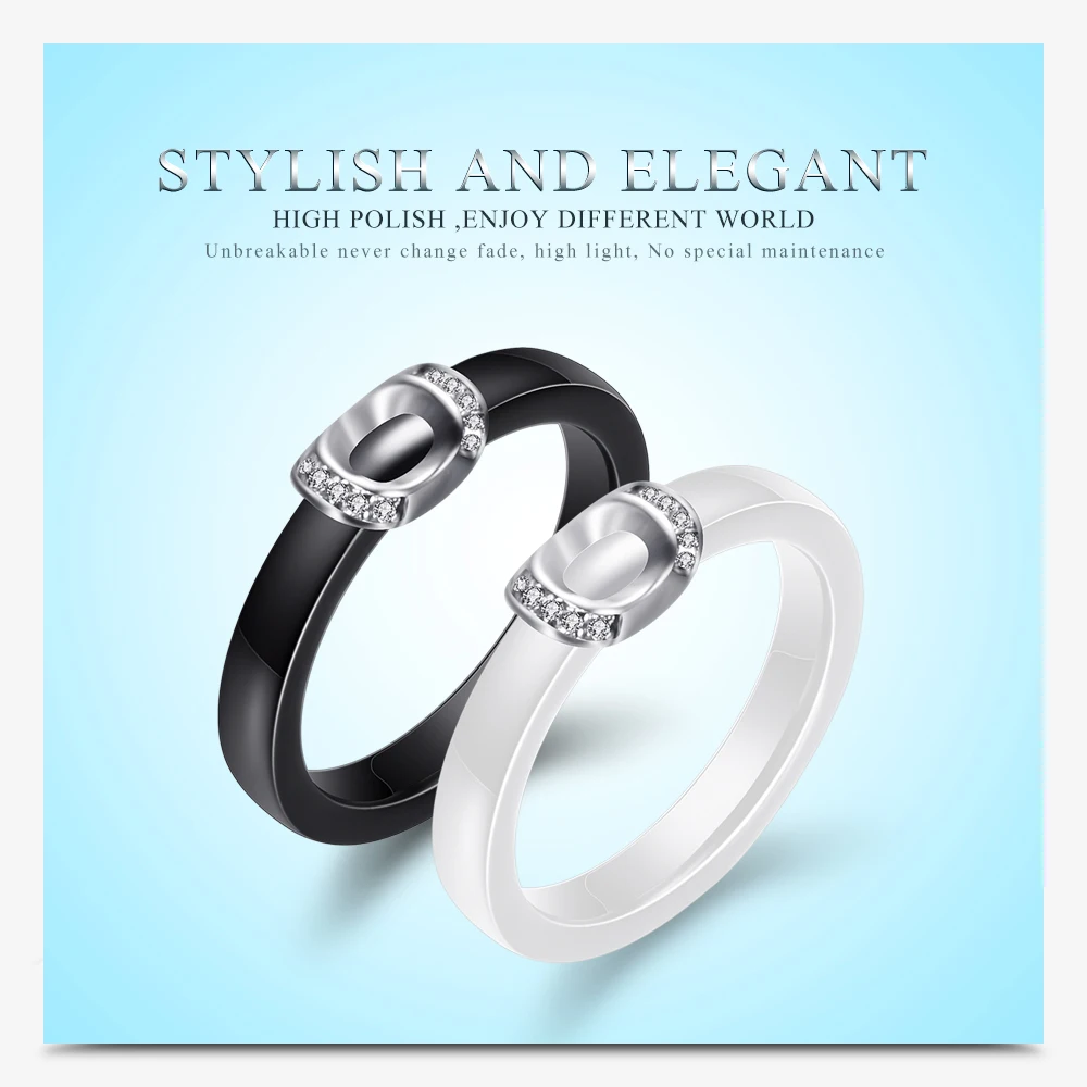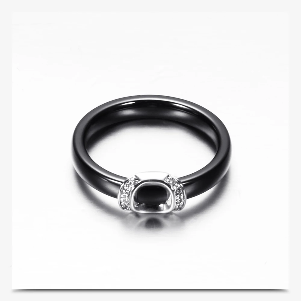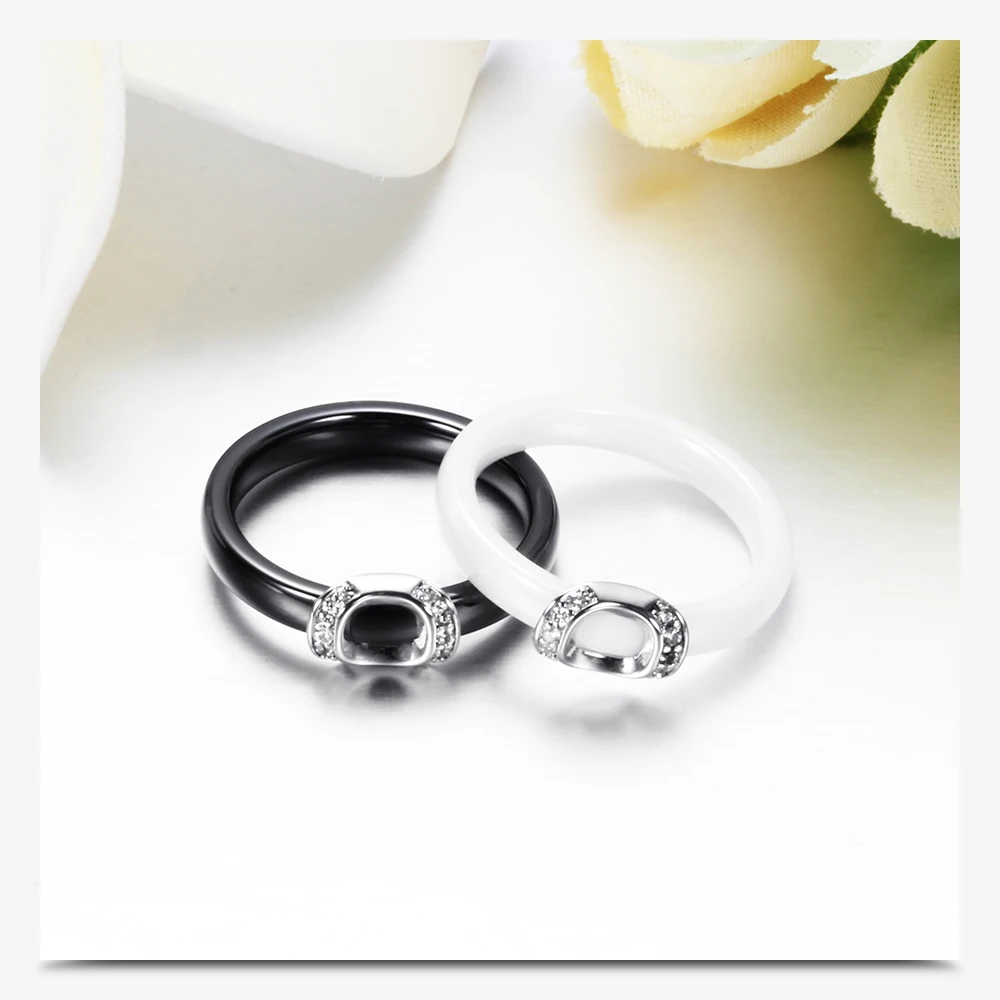 Unique Design White/Black Ceramic Ring With Cubic Zirconia Stone Women Jewelry Engagement Wedding Band Gifts For Women