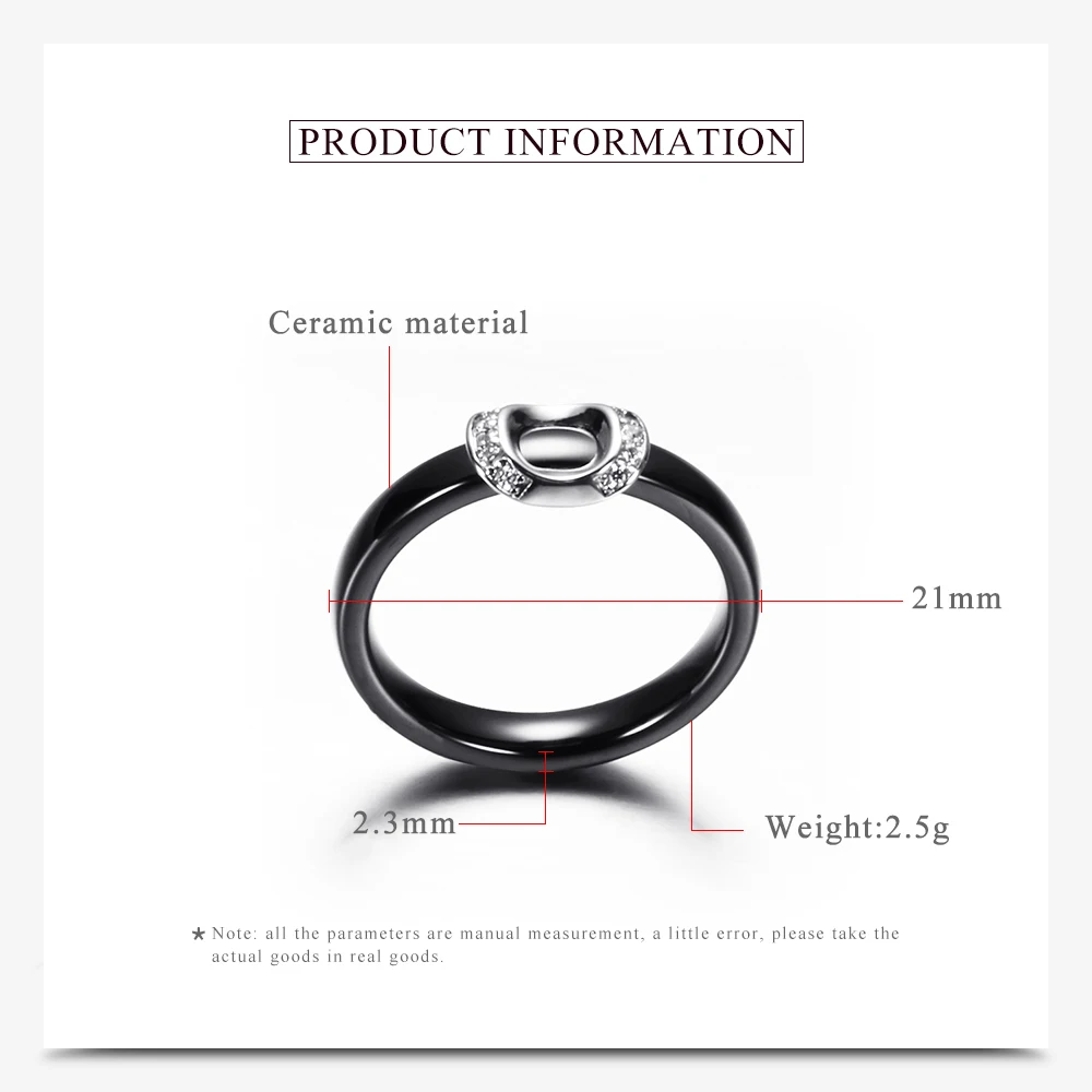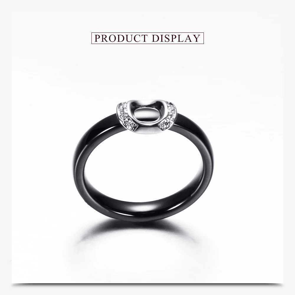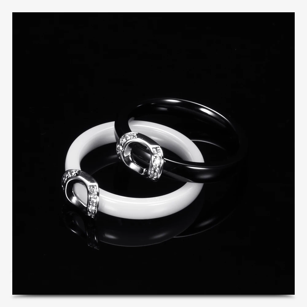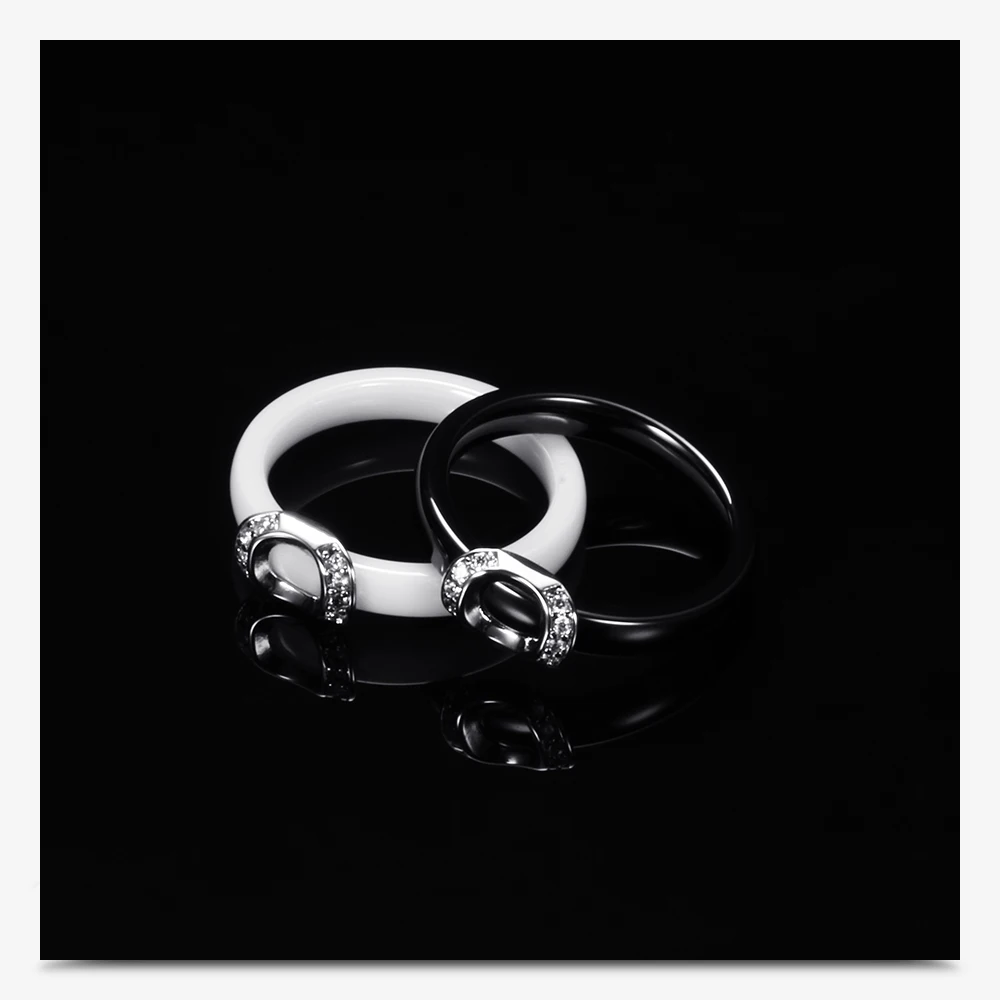 Unique Design White/Black Ceramic Ring With Cubic Zirconia Stone Women Jewelry Engagement Wedding Band Gifts For Women