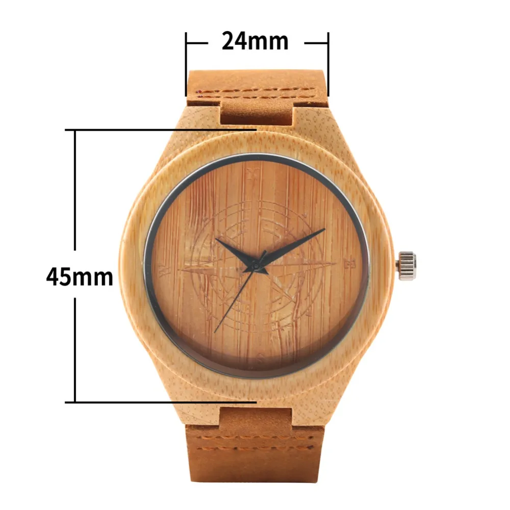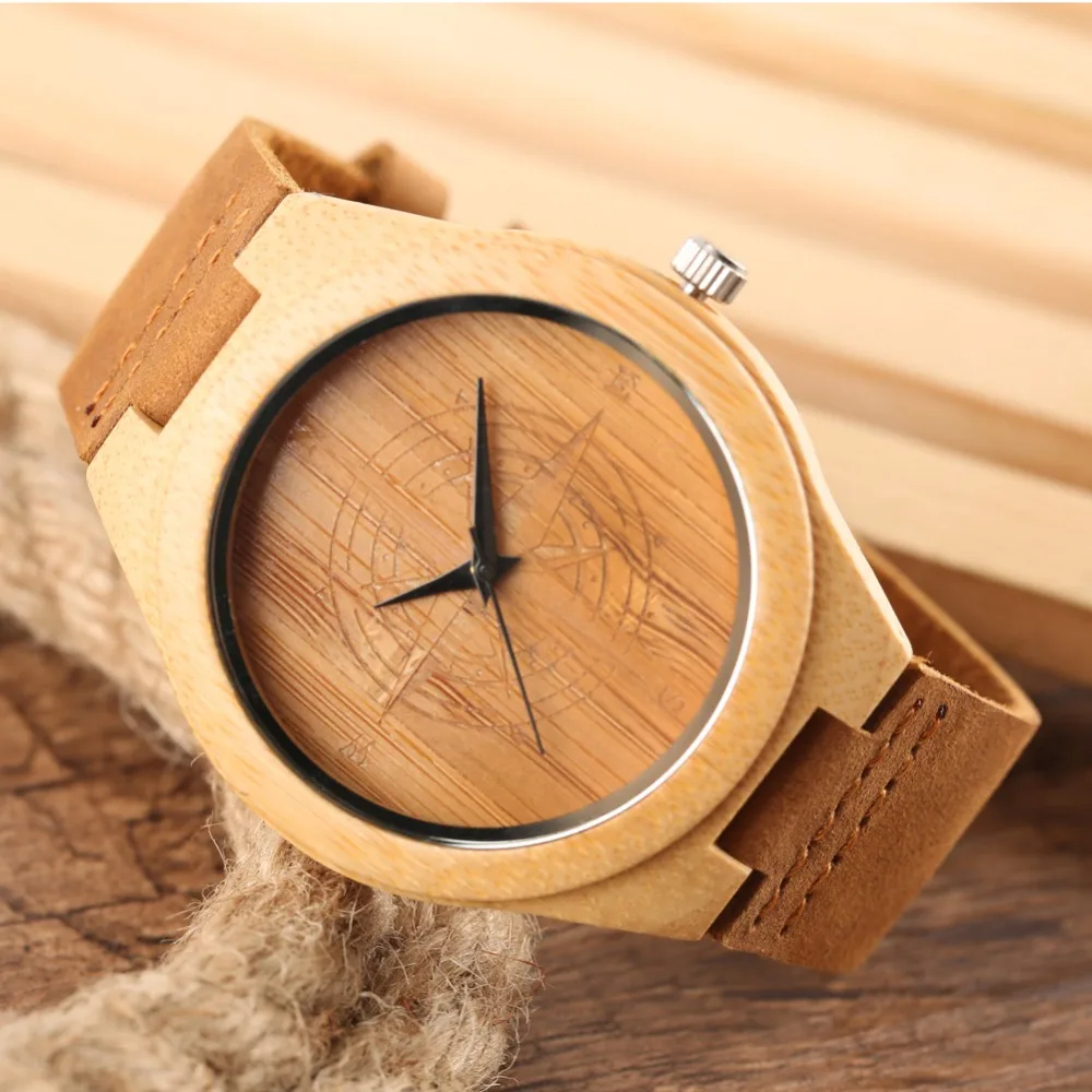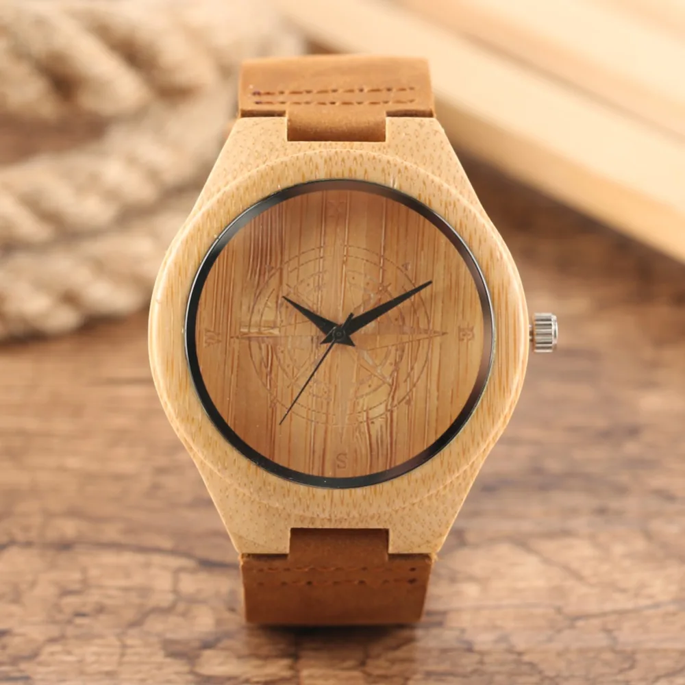 Unique Quartz Bamboo Men Women Watches Handmade Bamboo Watch Brown Color Fashion Bamboo Wooden Copass Wristwatch Gifts
