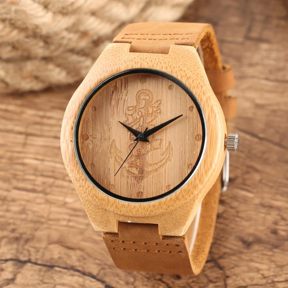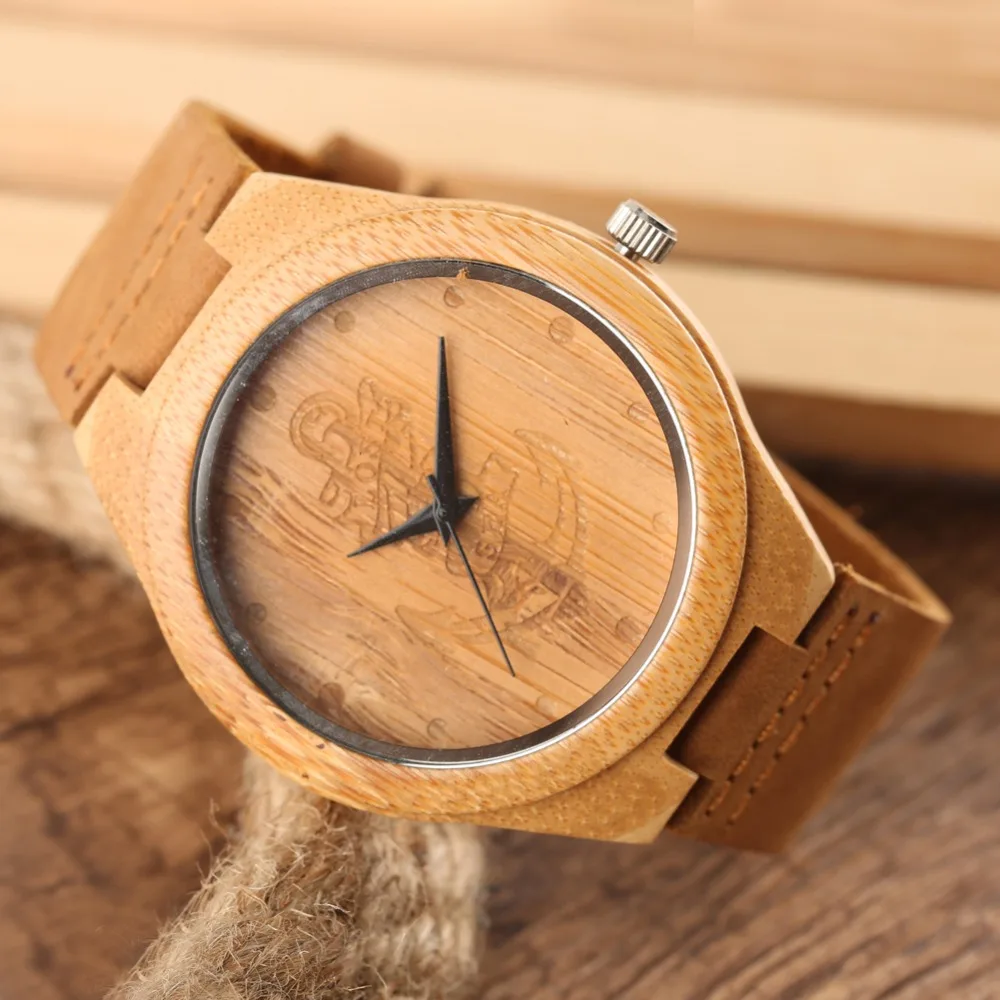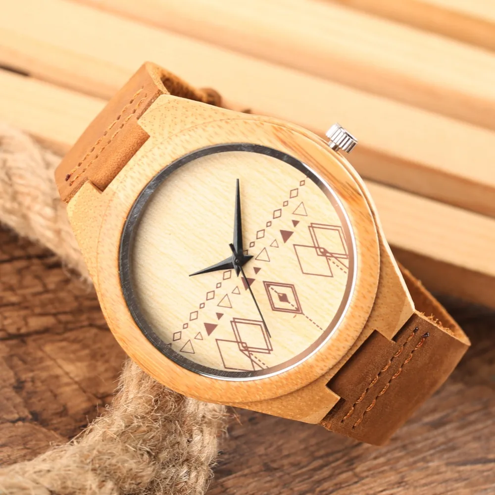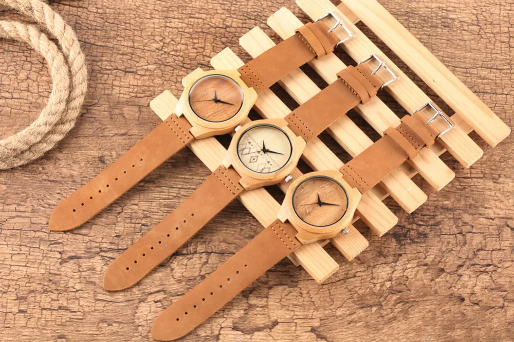 Unique Quartz Bamboo Men Women Watches Handmade Bamboo Watch Brown Color Fashion Bamboo Wooden Copass Wristwatch Gifts