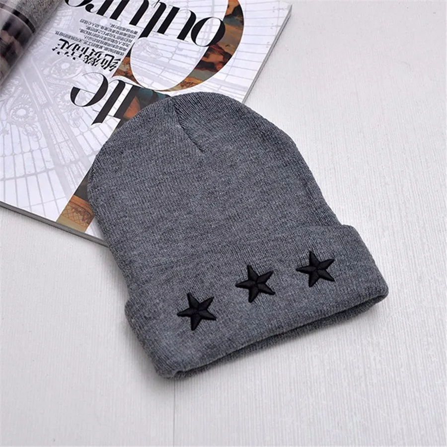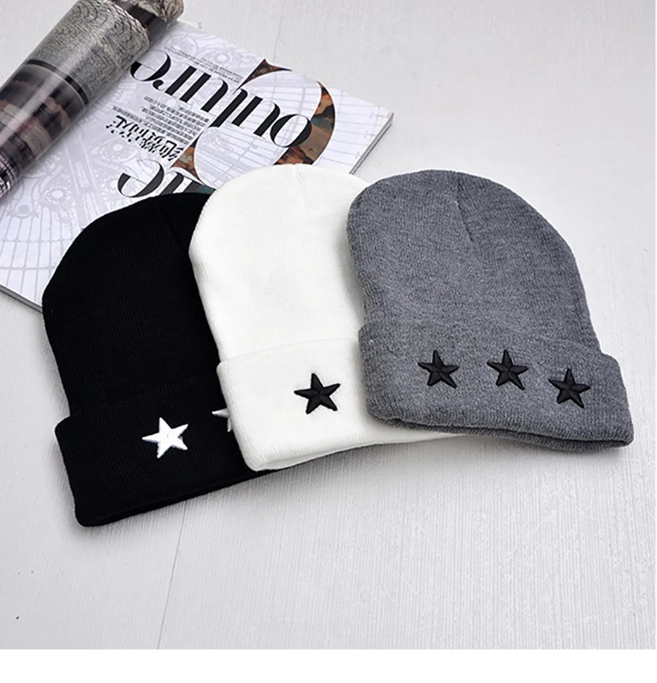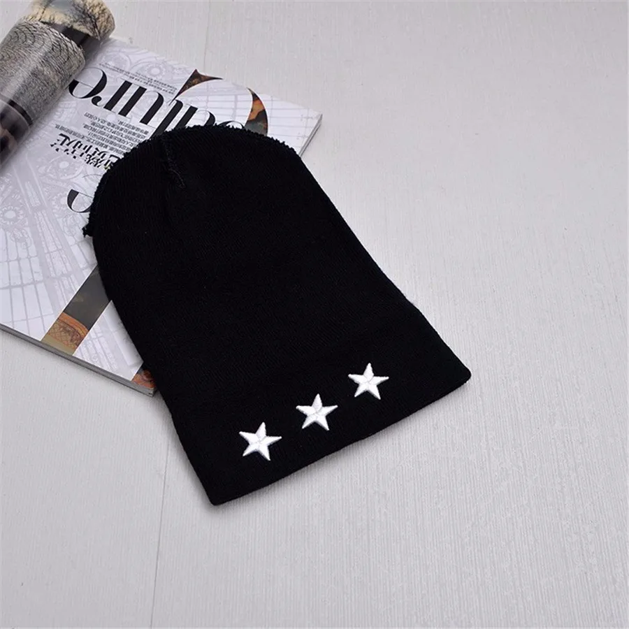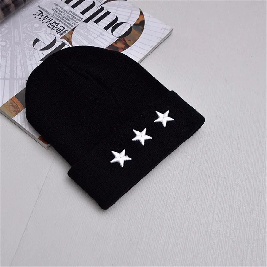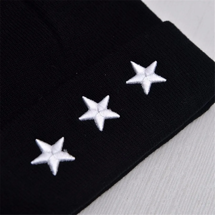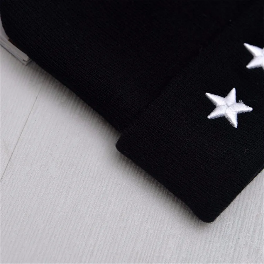Unisex Leisure Knitted Hat Female Warm Cotton Blends Hat Women’s Winter Cap Men Embroidery Stars Hip Hop Skullies Beanies Girls