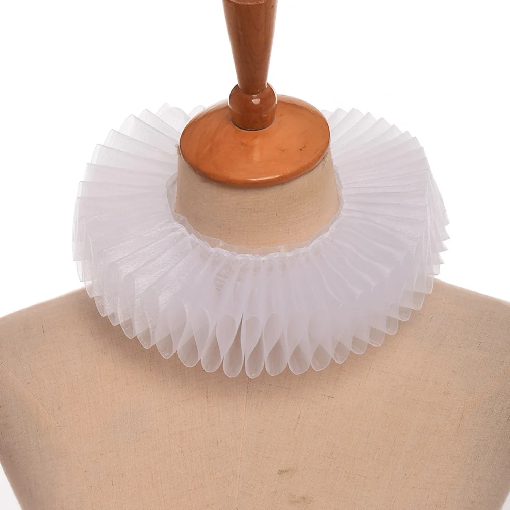Unisex Vintage Collar Women Men Noble Copslay Victorian Period Accessory Gauze Ruffled Neck Ruff