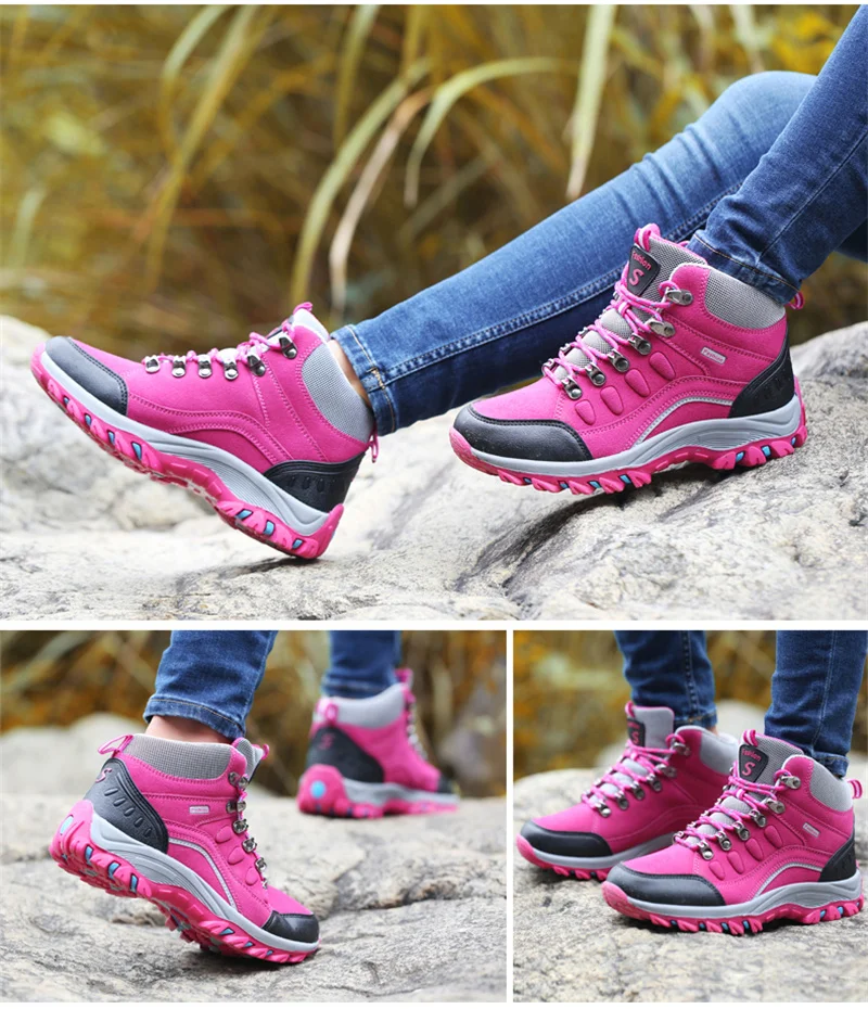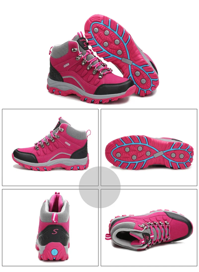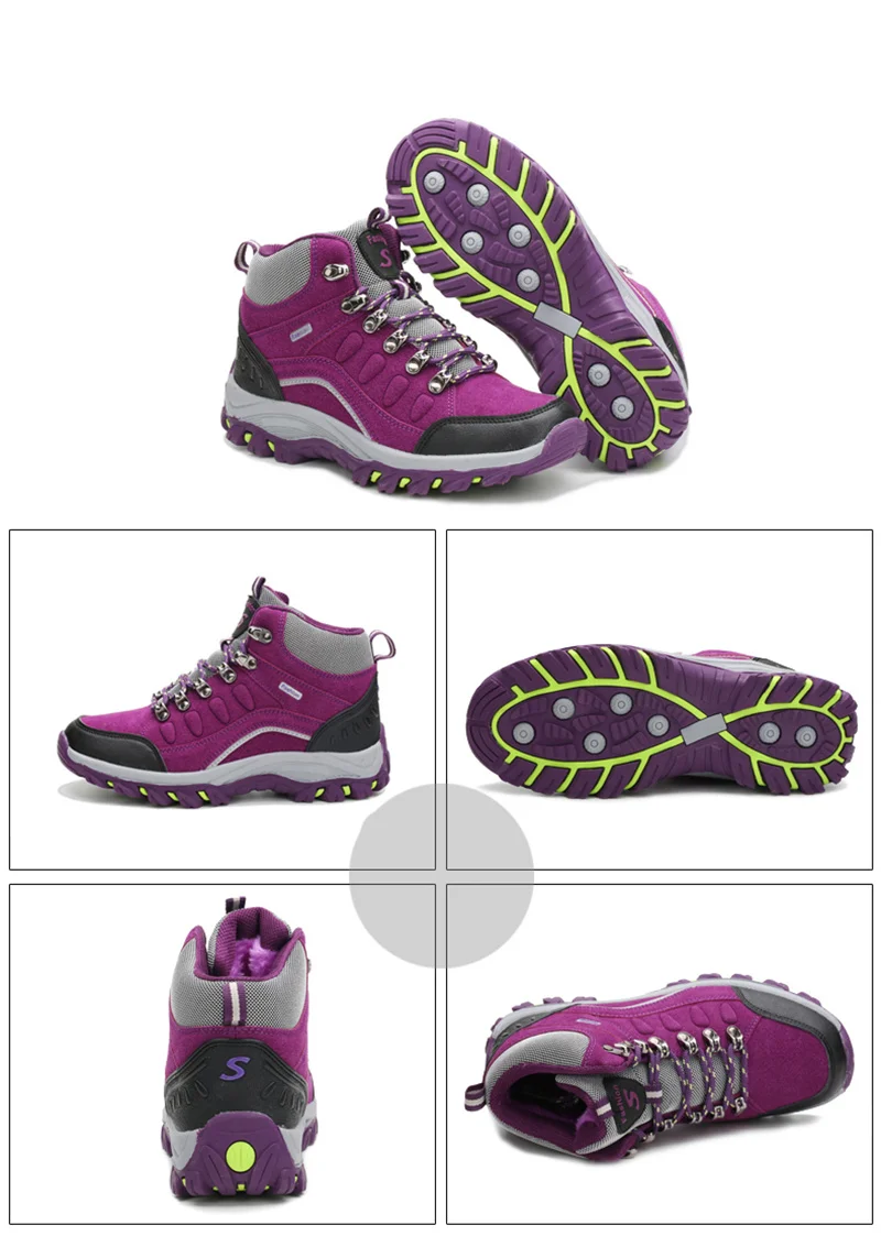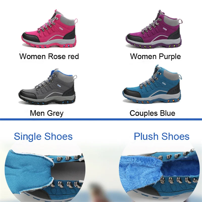 Unisex Winter Plush Waterproof Hiking Shoes Men Suede Leather Outdoor Sneakers Women Sport Trekking Couple Walking Shoes Zapatos