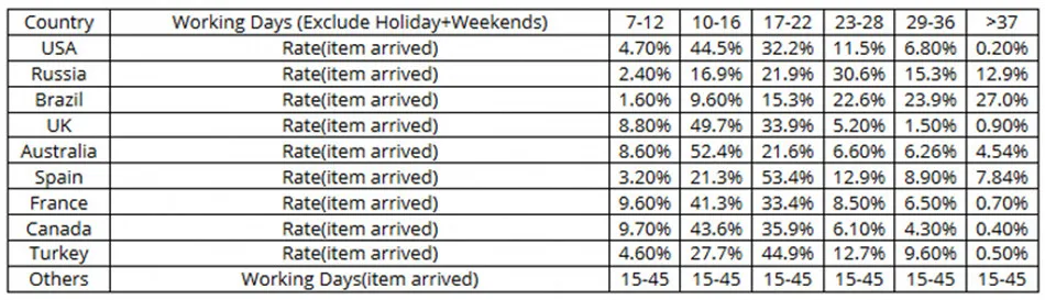except Brazil.Sometime the transit time may be long and vary,particularly during the holiday season.