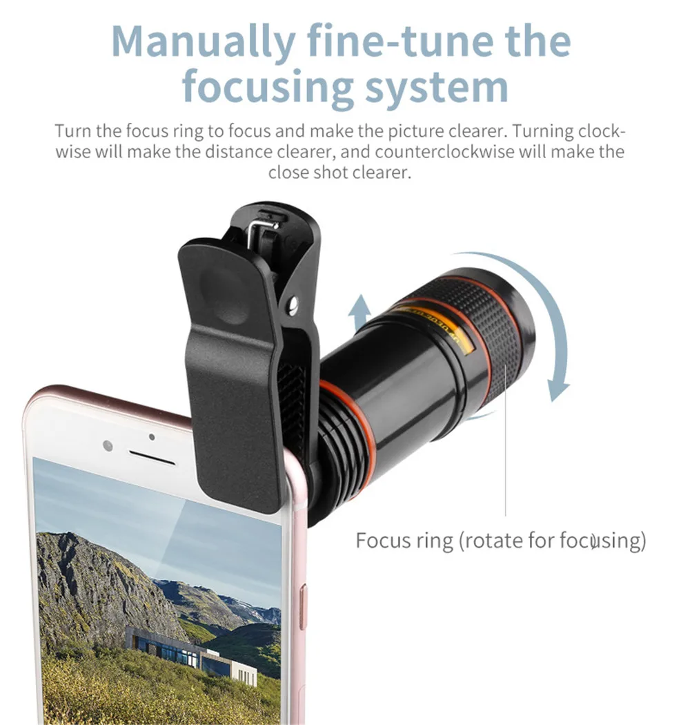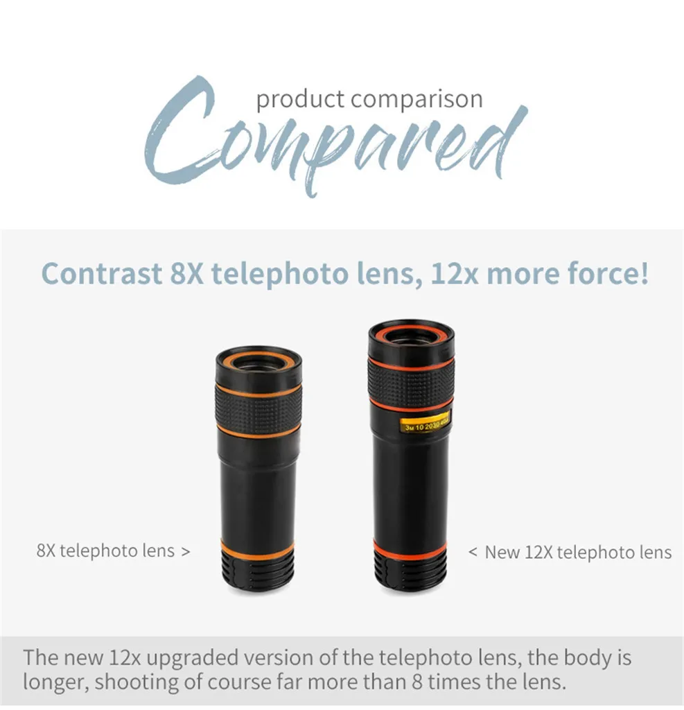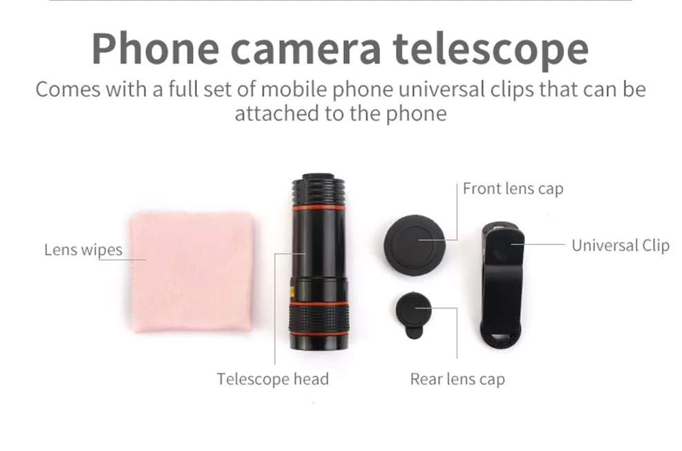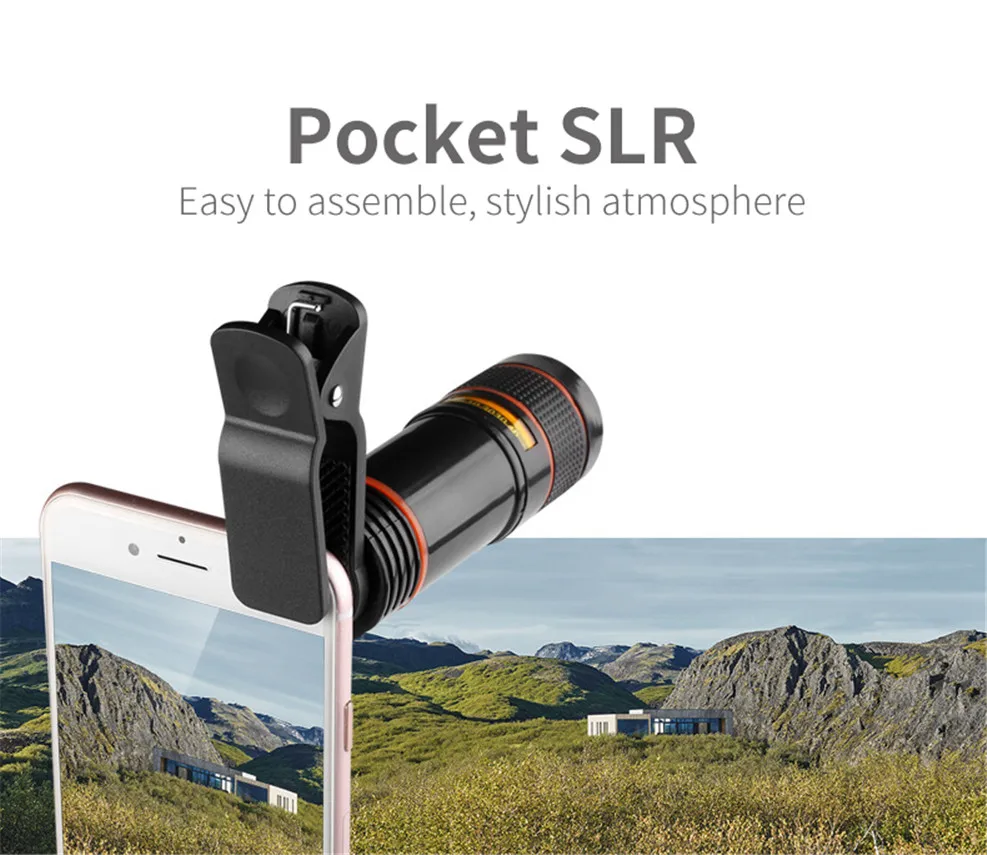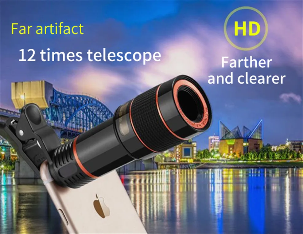 Universal 12x Zoom Optical Phone Telescope Portable Mobile Phone Lens for iPhone Xiaomi Samsung iPhone Huawei HTC LG Sony Etc