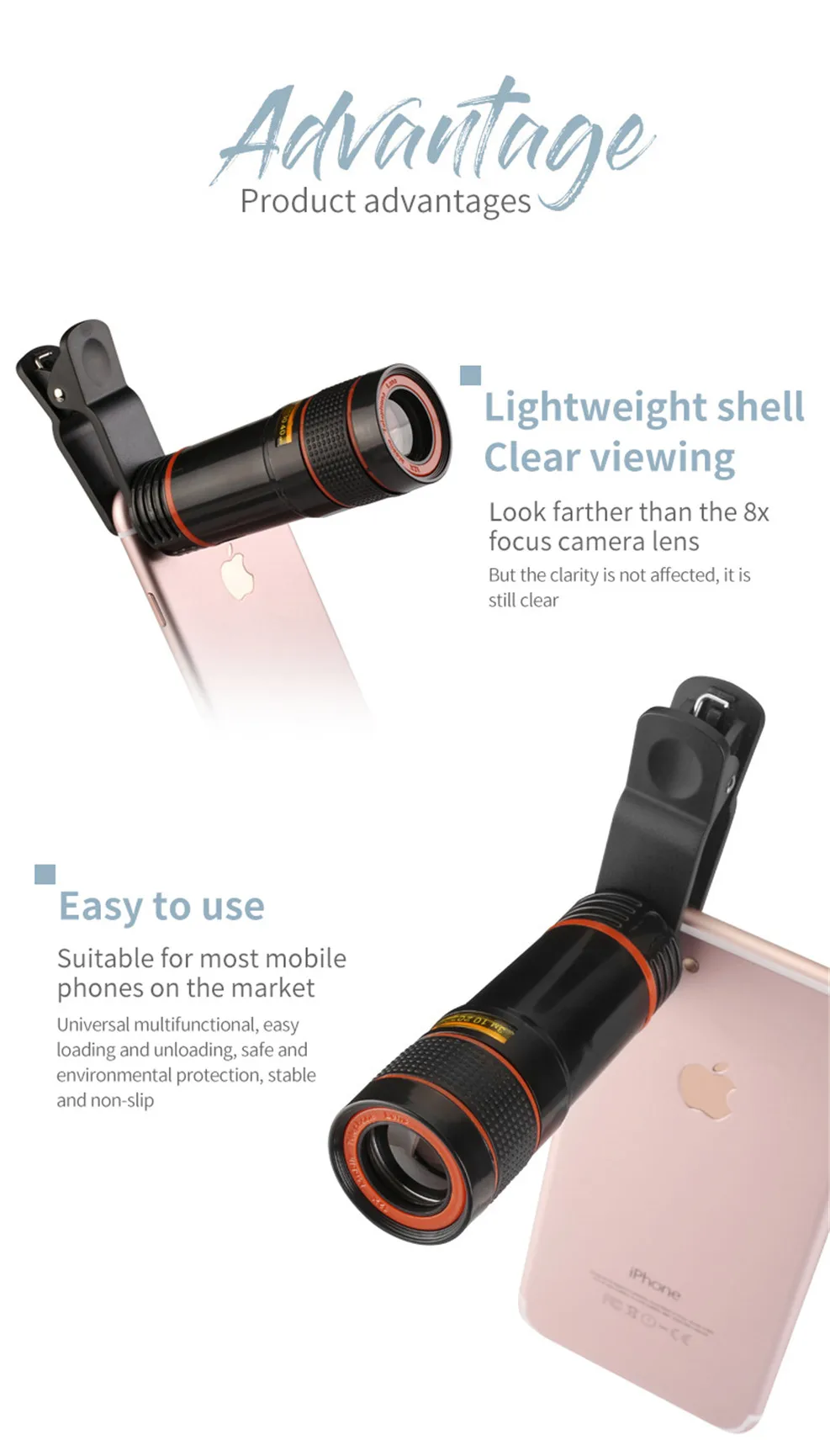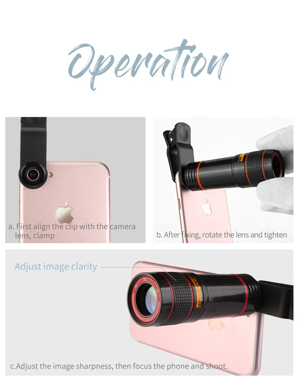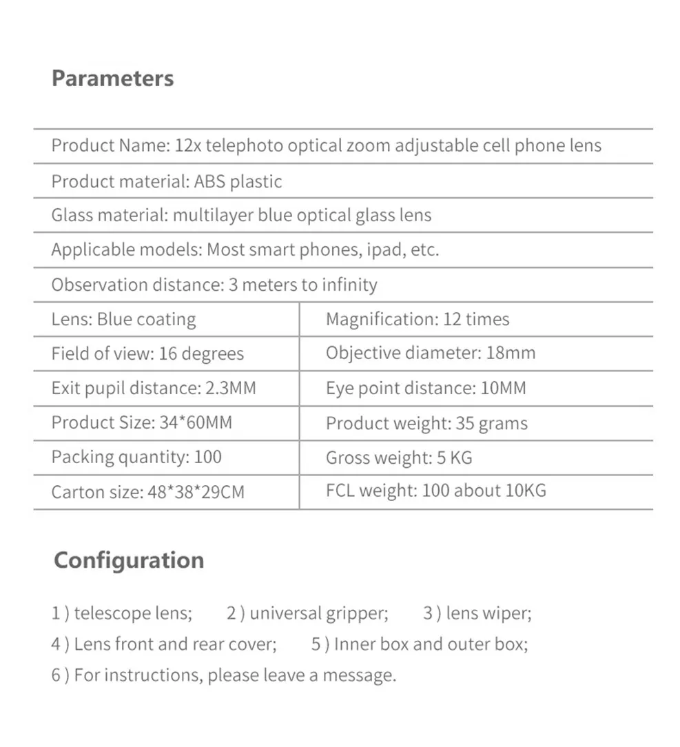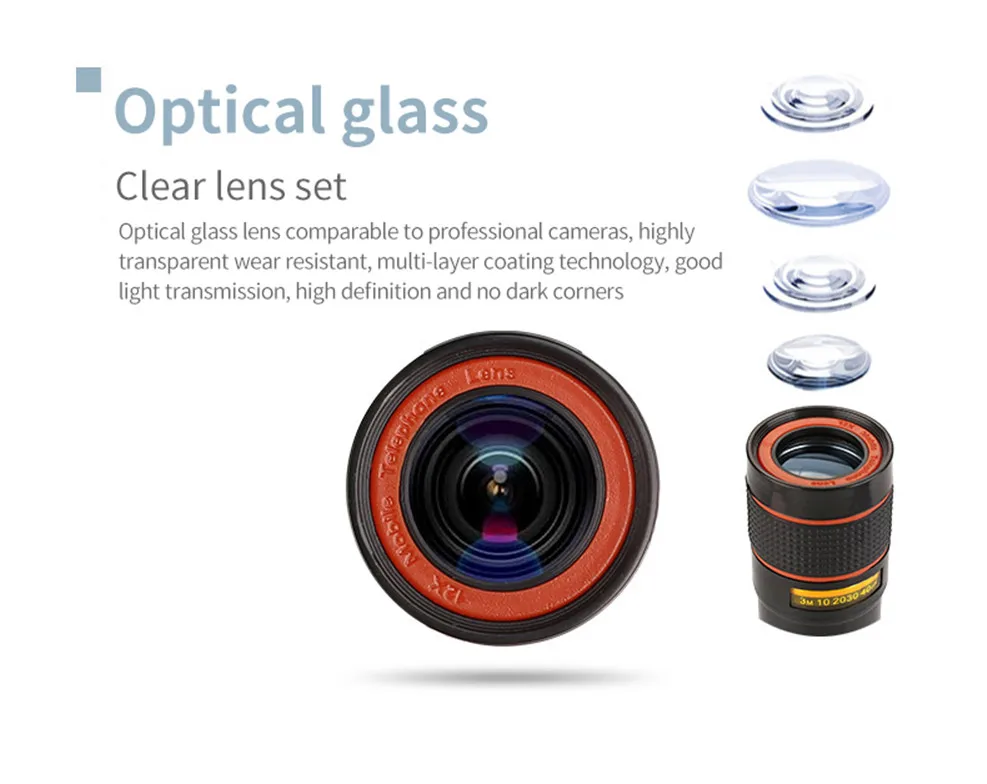 Universal 12x Zoom Optical Phone Telescope Portable Mobile Phone Lens for iPhone Xiaomi Samsung iPhone Huawei HTC LG Sony Etc